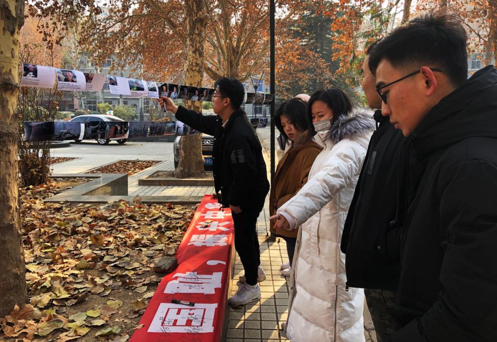 一张张历史照片无声讲述了1937年侵华日军在南京实施的惨绝人寰的屠杀暴行。历史不能忘却,国耻不能忘记。路过的同学仔细的看着每一副照片,并在横幅上留下了他们的姓名,大家纷纷表示:国家富强,才有人民安康,一定要以史为鉴,认真学习,为国家富强和民族振兴贡献自己的一份力量。