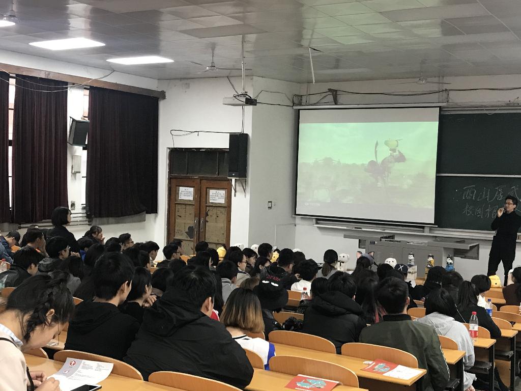 招聘会分为三个阶段进行,首先由西山居美术中心负责人张集源就目前公司的业务、公司基本情况、用人计划等方面进行了全面的介绍、讲解;人事经理就公司待遇、实习期间主要工作情况、公司未来的发展计划等方面与同学们进行了现场的交流与沟通;随后,同学们就目前存在的问题与公司进行了现场的问答交流,让同学们对公司有了全方位的认识。最后,公司在现场进行了基本的面试考察,同学们积极投递简历,等待进行下一步的复试考核。