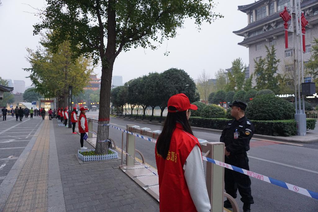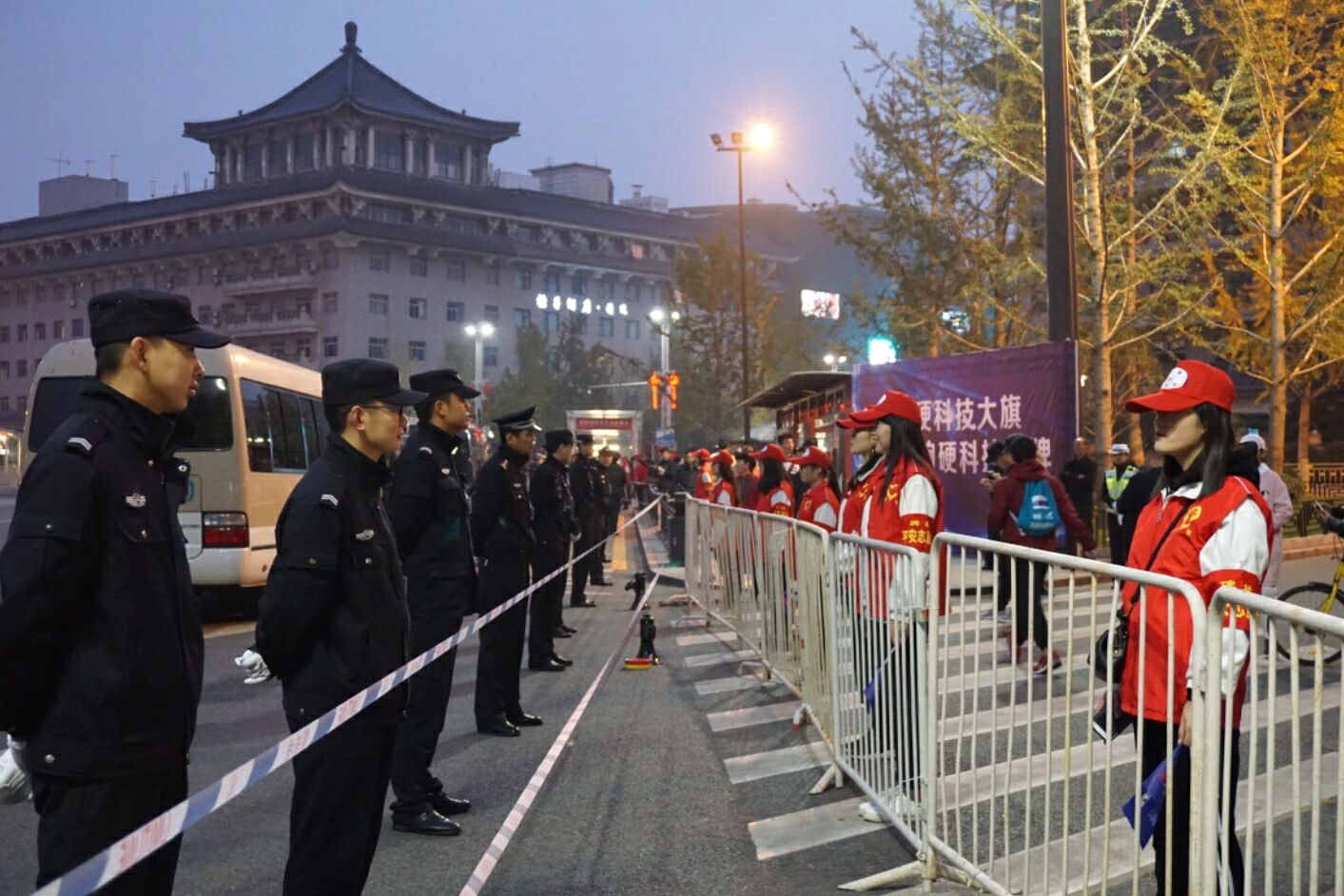 志愿者分成五个小组配合公安机关在南大街东侧依次排开维持秩序。寒风凛冽,但丝毫没有影响同学们的服务热情,他们以高度负责的态度有序疏导观赛群众、热情服务并解答参赛选手和观赛群众的咨询和求助。