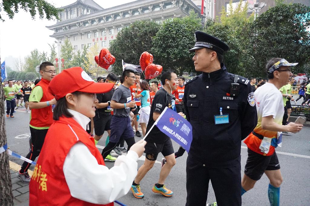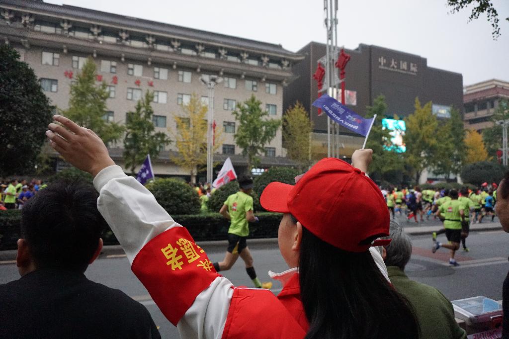 50名学生志愿者承担南大街段的志愿服务工作,保证了赛事顺利完成。