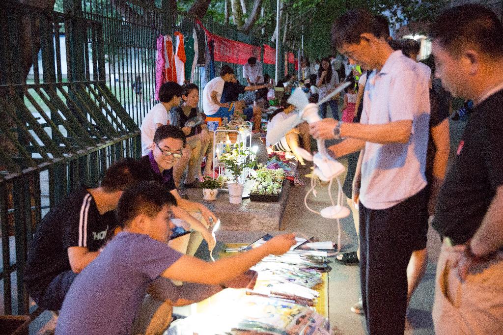 傍晚时分,“摊主们”早早就来到活动现场摆起了地摊,亮出自己的”商品”:复习资料、杂志、书桌柜子、服装饰品……商品涵盖了衣食住行各个方面,还有摊主售卖自己精心种植的各种植物。活动进行中,大学生们使出各自最具特色的营销战略吸引顾客,场面十分热闹,跳蚤市场也吸引了许多教职工前来参与。