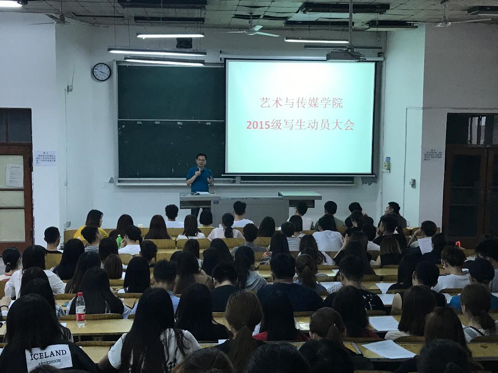 2017年5月18日下午3:30分,艺术与传媒黑料不打烊 在4F-J2举行了2015级学生写生动员大会,大会由辅导员杨娜娜主持,教学副院长周著以及全体带队教师出席大会,本次写生的视觉传达、产品设计专业166名学生参加了动员大会。