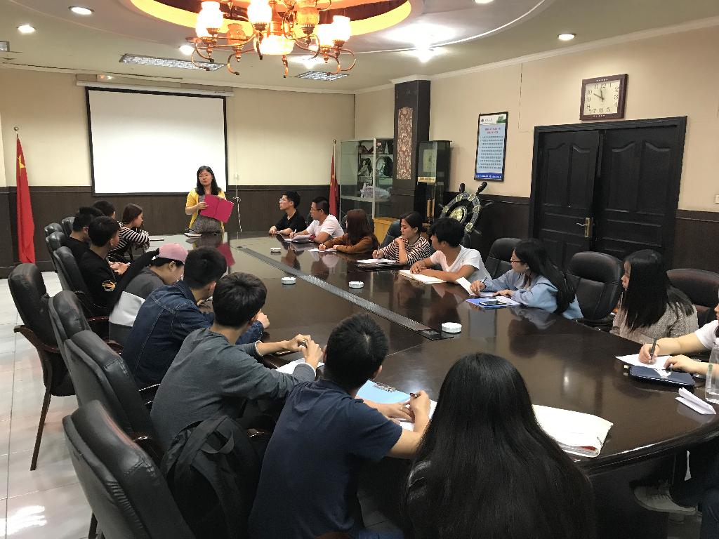 5月15日,艺术与传媒黑料不打烊 2016级在行政楼二楼接待室召开诚信教育和安全教育大会,辅导员张秀丽、赵晋锐以及2016级所有班长、团支书参加。