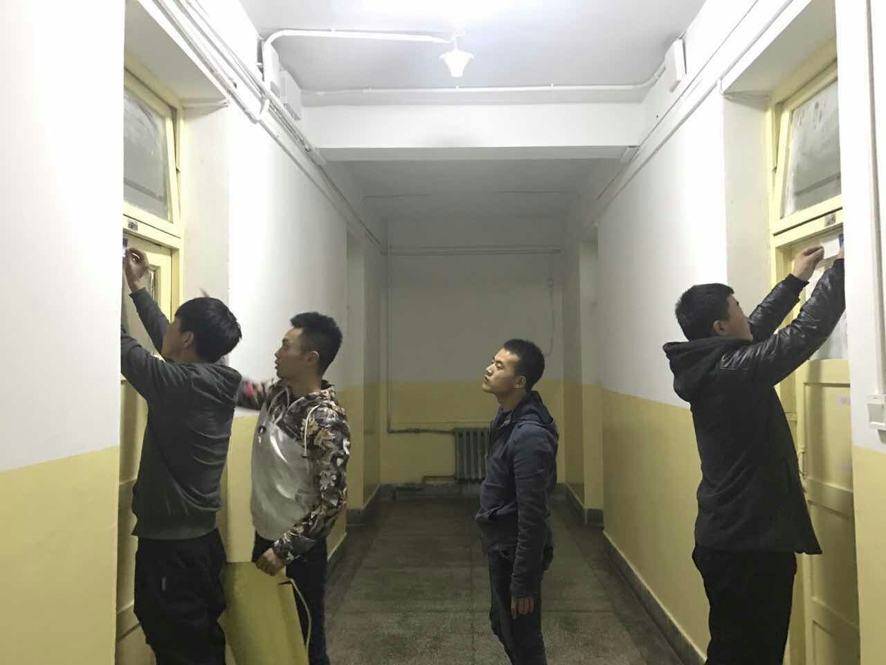 在打扫好宿舍卫生的同时,同学们还对宿舍进行了“改造”工作,让宿舍变成了和谐温馨的“家”。在冰冷的水泥地上铺上泡沫板,把书桌贴上自己喜欢的壁纸,不仅使自己住的舒心,也让辅导员一进宿舍就有种干净、明亮的感觉;同时同学们在宿舍门板上贴上艺术黑料不打烊 的“专属标签”,从个人到宿舍,从实际行动为黑料不打烊 代言。