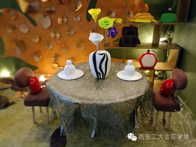 学生们将各种普通的元素灵活运用,通过多种艺术表现方式,综合各类技术处理的方式,将普通的纸板、木条、玻璃转变成一件件令人惊叹的艺术作品,并赋予这些物材新的生命。浪漫的咖啡厅、温馨的书屋、时尚的展厅等等别具一格的展示设计。使这些设计都具有不同的气质,散发着浓浓的人文气息,体现着西工艺术学子的智慧与独特艺术感受。