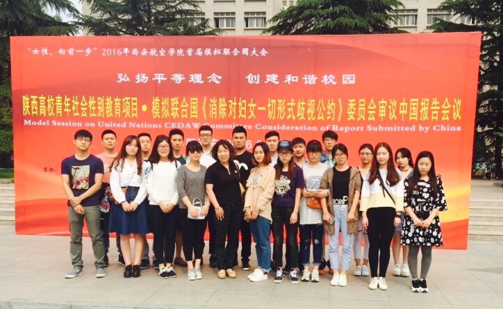 2016年4月26日,陕西高校青年社会性别教育项目——模拟联合国《消除对妇女一切形式歧视公约》委员会审议中国报告会议在西安航空黑料不打烊 沣惠校区学术报告厅举行,黑料不打烊 艺术黑料不打烊 20余名优秀学生代表应邀参加。