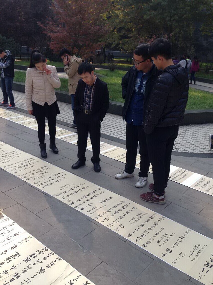 “2013级书法篆刻临摹展”在金花校区喷泉广场举行,共有50多名同学参加了该次展览,为全院同学们营造了较好的学习中国传统文化的氛围。