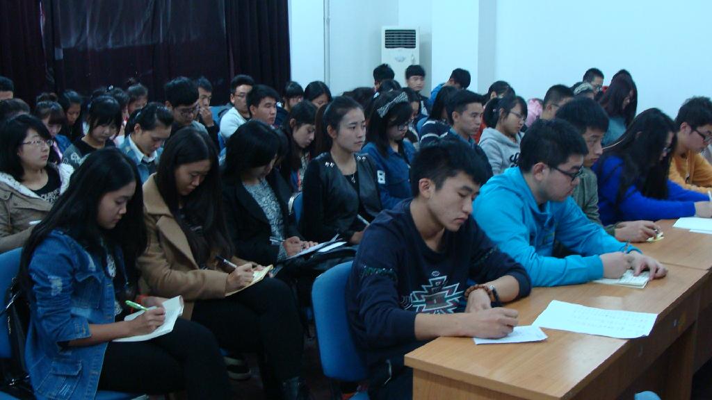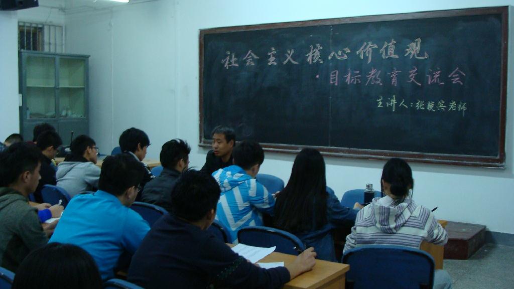 会上,张晓宾老师首先向同学们讲解了社会主义核心价值观的二十四字方针。强调“我们作为学生要用自己的行动去积极践行社会主义核心价值观,做一个合格的学生干部”。同时,张老师就“如何做一名优秀的团学干部”为引言向同学们讲述了团支部的日常工作及各支部应该如何开展具有时代特点的、有意义的活动。最后,张老师对同学们提出四点要求:第一,时刻关注团中央、团省委、校团委和学校网站;第二,关注我国传统文化和古典文化;第三,处理好与同学的关系,与同学们互相交流、互相学习,共同进步;第四,积极参与到党组织的各项工作中,在工作中不断提高自身能力。