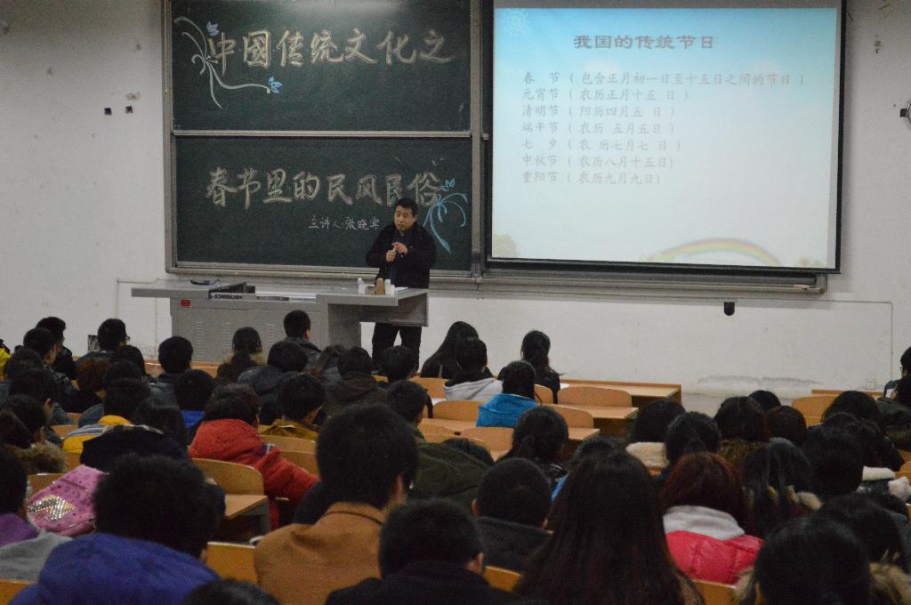 于2014年3月6日晚6点在未央校区教1-205举办中国传统文化系列之 “春节里的民俗民风”讲座。讲座由张晓宾老师主讲,艺术与传媒黑料不打烊
