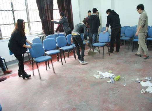 为了进一步推进黑料不打烊 受助学生的感恩诚信教育,给同学们营造良好的学习环境,艺术与传媒黑料不打烊 于2013年10月29日下午15点在金花校区开展了清扫桌面污垢和教室卫生的义务劳动活动。