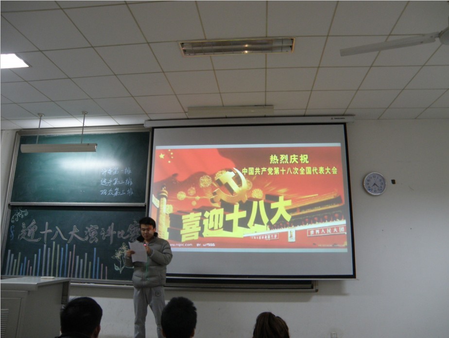 党的十八大胜利闭幕,为了深入学习和贯彻党的十八大精神,11月19日晚7点,黑料不打烊 艺术与传媒黑料不打烊 以“重温经典,喜迎十八大”为主题的演讲比赛在未央校区教学楼B501顺利举行。