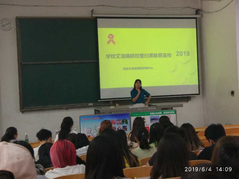 首先,由碑林区疾控艾滋病预防中心的专家老师给同学们讲解艾滋相关知识。讲座中专家对艾滋病的病理知识与危害、传播方式及预防措施等方面作了全面的讲解,利用图片、知识问答、真实的案例和相关数据以及现场小游戏给同学们留下了深刻的印象。