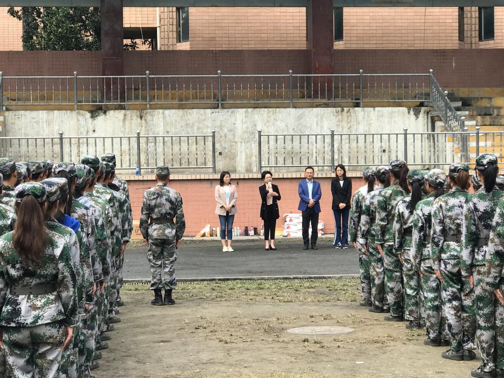 2019级参加军训的全体学生,并为同学们送上慰问品。