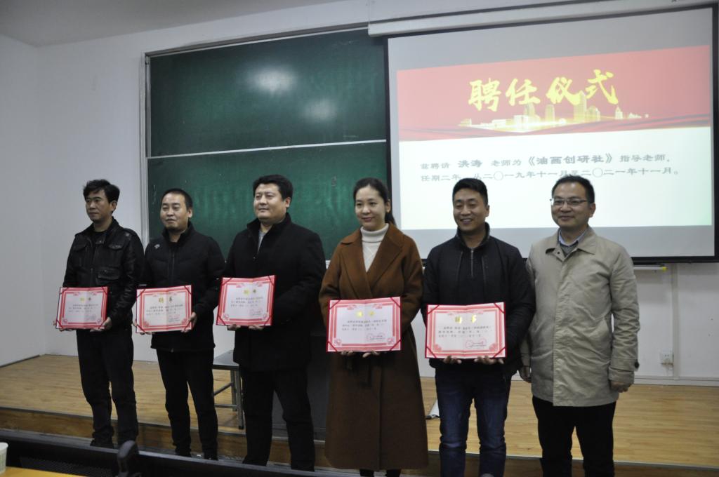 在教2-207召开社团指导老师聘任仪式,院党委书记周著、校团委实践部副部长、辅导员组长张晓宾、各指导老师、社会学生代表100人参加了此次聘任仪式。