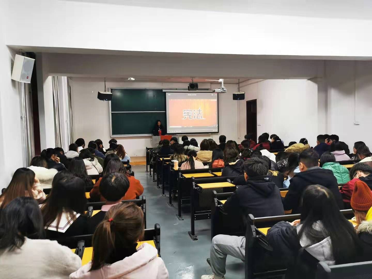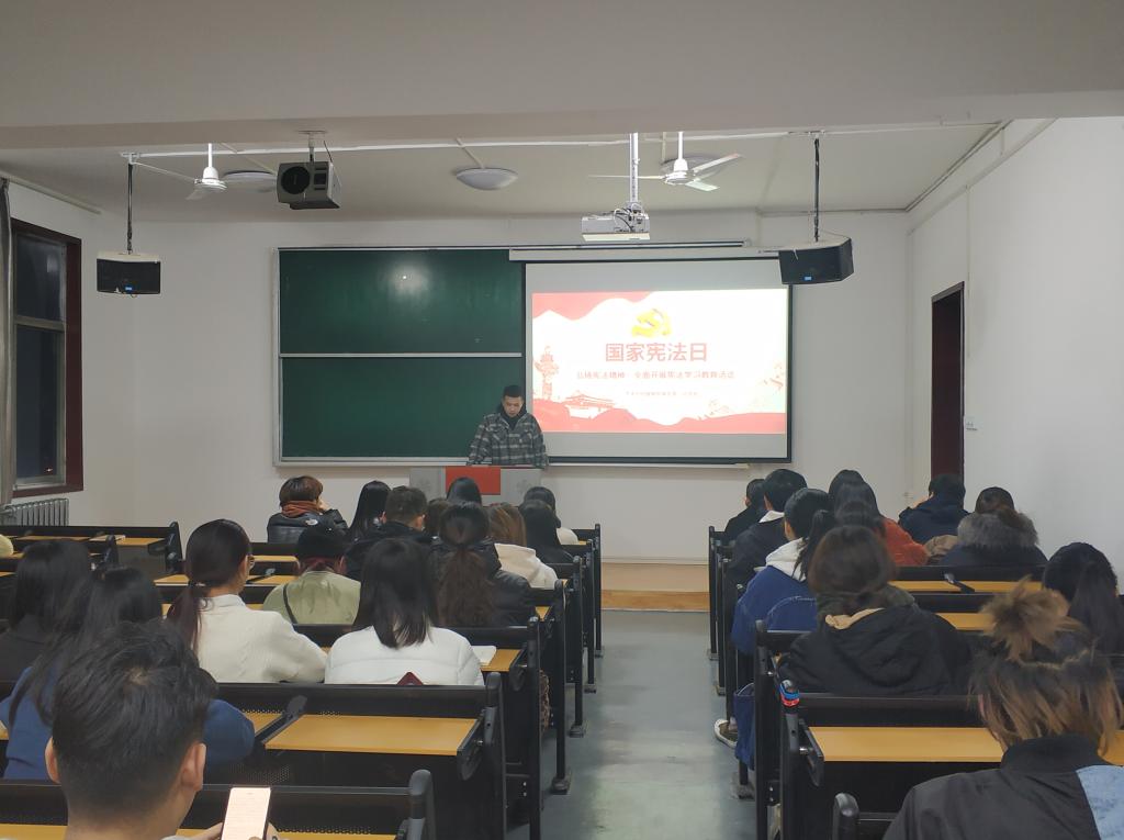 2019年12月4日是第六个国家宪法日,这也是我国第二次开展“宪法宣传周”活动。宪法是我国的根本大法,拥有最高法律效力。在J2-203教室,张晓宾老师结合相关宪法条款,从出生、升学、成年、买房子、退休等角度讲解了“宪法和你的一生都有什么关系”。接着大家一同观看了宪法宣传片,明确了以宪法为核心的中国特色社会主义法律体系、号召党员同志提高自身法律意识、弘扬宪法精神。在J2-206教室,团委办公室王芊懿结合课件以“国家宪法日”为主题,向同学们普及宪法知识,并组织观看有关宪法的视频。