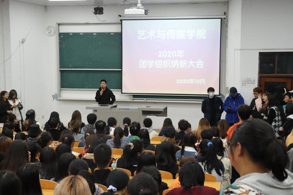 为了增强团学组织凝聚力,补充各组织新鲜血液,全面锻炼学生组织能力、协调能力、工作能力。艺术与传媒学院于2020年10月27日晚在J4-219隆重召开2020年团学组织纳新大会。