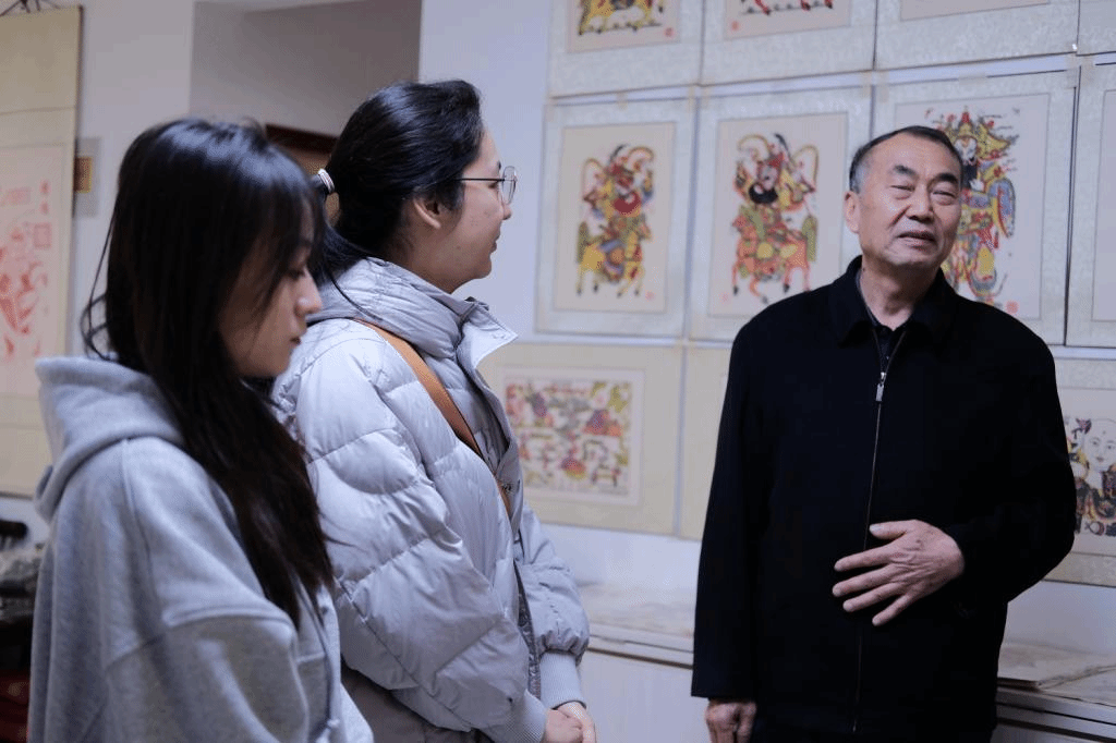 首先,木板年画大师邰立平为大家介绍了凤翔木版年画的历史和目前的发展情况,给实践队展示了已经恢复的原刻木板中的部分精品和相关年画作品。随后,除了摆放着的年画和制作年画的木板外,邰立平还向同学们介绍了一本有关凤翔木板年画的书。这是著名学者冯骥才以邰立平的对话为蓝本,写作的口述史,是目前研究木板年画领域的权威之作。“这是冯骥才老师专门给我写的书。”邰立平的自豪溢于言表,是家传的影响和多年的坚持。