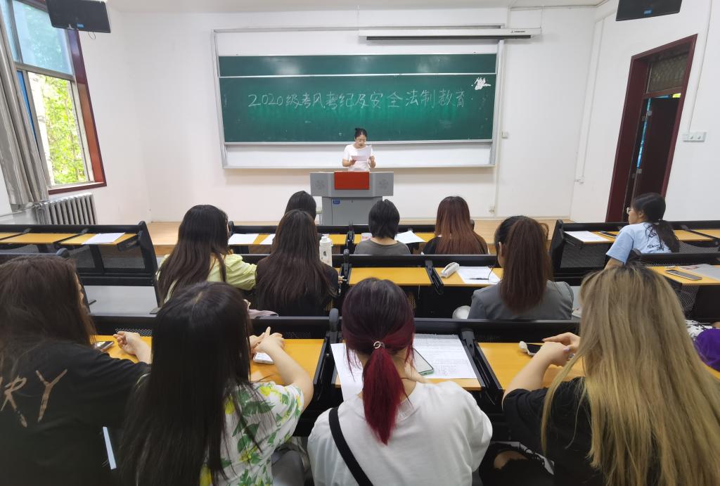 2021年6月9日上午在教2-207召开了2020级考风考纪暨安全法制教育大会。本次会议由辅导员张秀丽老师主持,2020级学生参加。