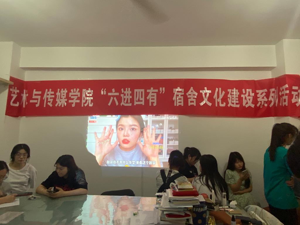 6月7日,在4#女生公寓活动室利用媒体设备播放网络平台的美妆长视频、Vlog以及美妆常用知识,同学们兴致高涨,参与度很高。除此之外,通过各年级网络平台、校园宣传栏等多种途径召集化妆小能手,为接下来的化妆比拼活动做好准备。