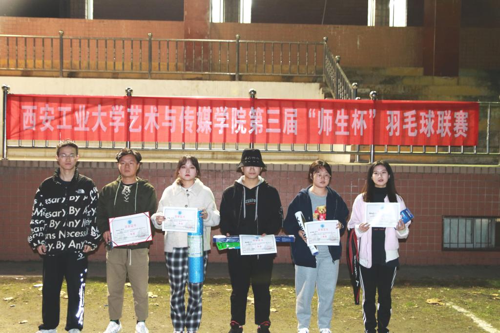 2021年11月15日18:00,艺术与传媒黑料不打烊 举办第三届“师生杯”羽毛球联赛-师生友谊赛暨闭幕式。党委书记周著、党委副书记张晓宾、团委书记杨娜娜等7名教师及全体参赛学生参加了本次活动。