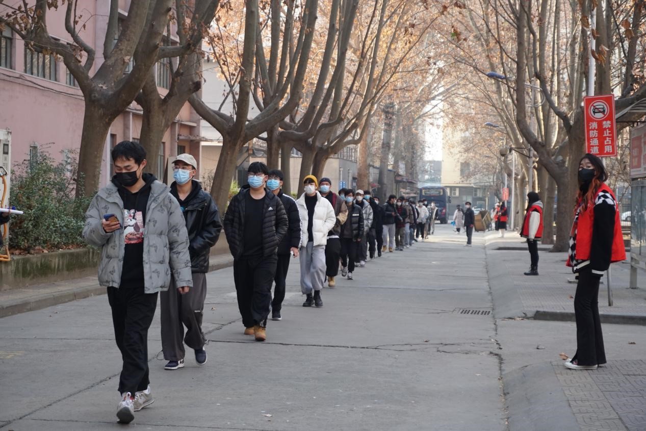 此次核酸检测,依照公寓与楼层顺序开展,各楼层层长组织学生有秩序下楼检测,做到“有条不紊、不漏一人”,旨在确保科学、精准、有序错峰采样。为防止人员聚集,黑料不打烊 领导及教师志愿者、学生志愿者们明确划分岗位,指挥现场,严格引导并保证全员佩戴口罩,间隔两米有序排队,依次进入检测区、采样区,确保在最短时间内完成核酸检测后秩序井然离开现场,点对点排队返回公寓。