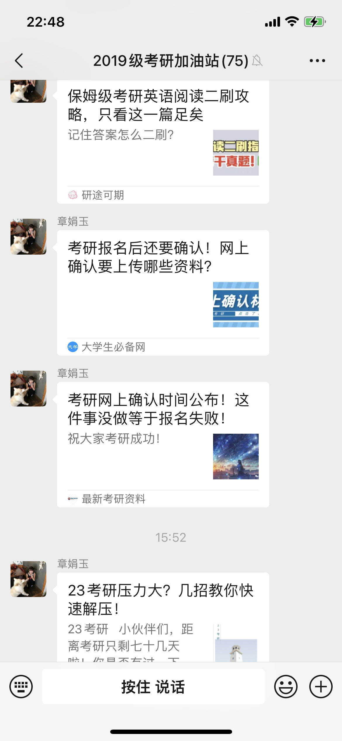 强化多方联动,跟进“组合拳”。一是选聘年级就业大使2名,建立就业工作QQ群及考研加油群,学生就业大使每天搜集整理相关招聘信息,第一时间在群内推送,帮助毕业生了解更多企业招聘情况,更加直观地进行企业选择;及时提醒同学们关注企业线上宣讲会时间,督促同学们积极应聘,把握良机。针对考研同学,就业大使每天发布考研小贴士及考研信息咨询,持续搜集同学们备考过程中的各种困难和问题,做到一周一总结,一周一反馈,及时解决同学们的急难愁盼。二是充分发挥专业课教师及学业导师的作用,形成两周一次例会制度,分析研判就业形势,深入了解学生就业动态,共同促进学生更快更好就业。三是与学生家长沟通常态化,了解家庭环境对学生就业方向的影响,争取家长的支持与配合,形成就业合力。