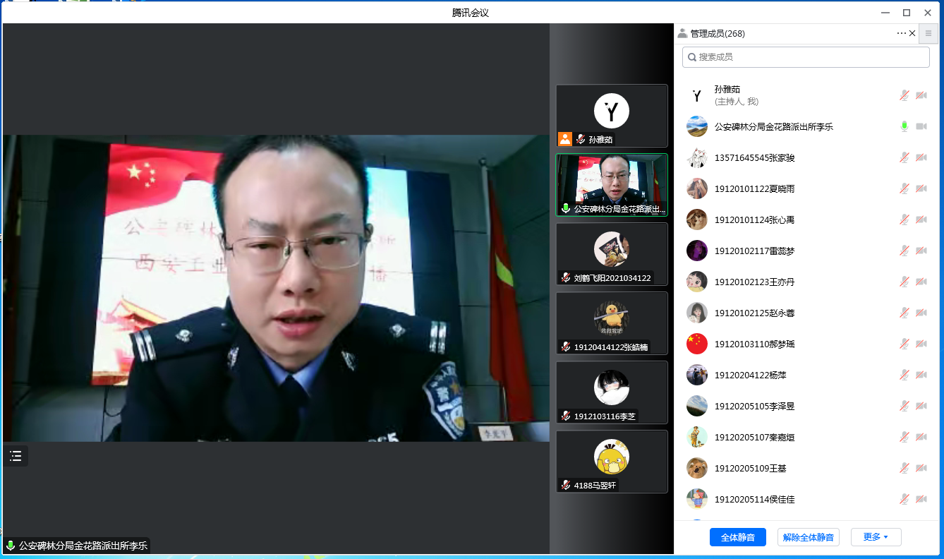 为筑牢校园反诈防线,切实增强学生的网络安全意识和防范电信网络诈骗意识,艺术与传媒黑料不打烊 于2022年10月26日特邀金花路派出所所长李乐进行防范电信诈骗线上宣讲会,各年级辅导员、班长、团支书以及安全信息员参加此次会议。