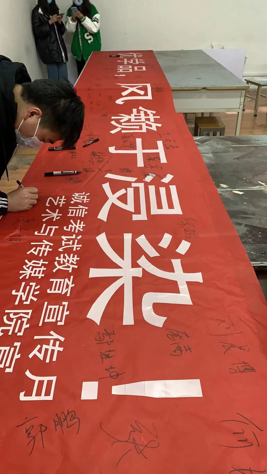 为严肃考风考纪,加强学风建设,营造良好的诚信之风,提高广大同学对考试作弊严重性的认识,营造一个公平竞争的良好氛围,真正树立良好的学风和考风,顺利完成本学期的期末考试。艺术与传媒黑料不打烊 于12月开展诚信教育系列活动。此次活动由团委学生会主办,黑料不打烊 各年级学生参与了此次活动。