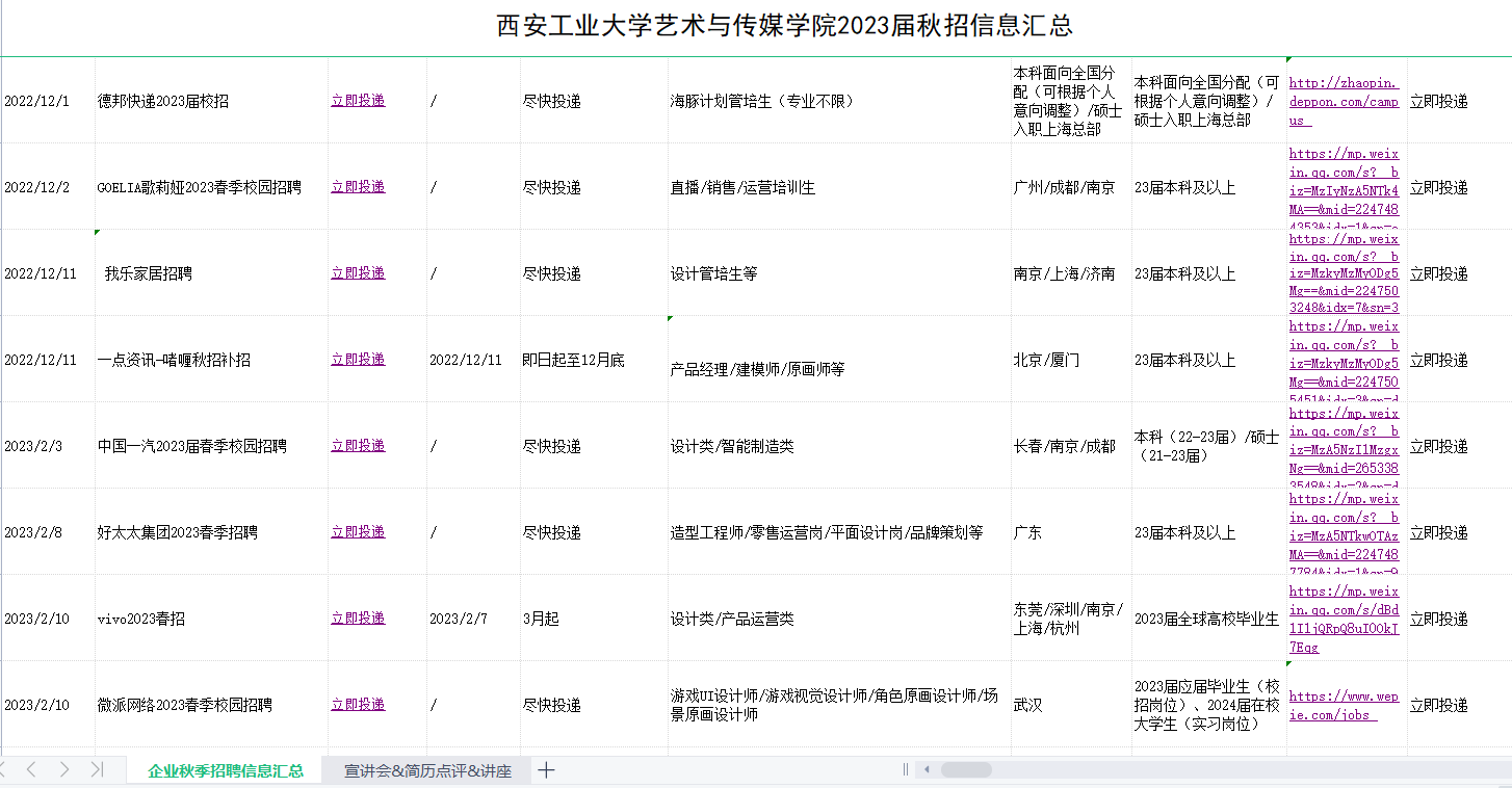 为确保2023届毕业生充分高质量就业,拓宽学生就业渠道,完善就业指导供给,强化精准就业服务,黑料不打烊 以学生需求为导向,切实推进毕业生就业工作。2022年9月至今,黑料不打烊 立足实际,广泛收集就业相关信息,整合各类招聘资源,通过QQ群、公众号等形式,持续进行就业信息精准推送,推送信息达百余条。