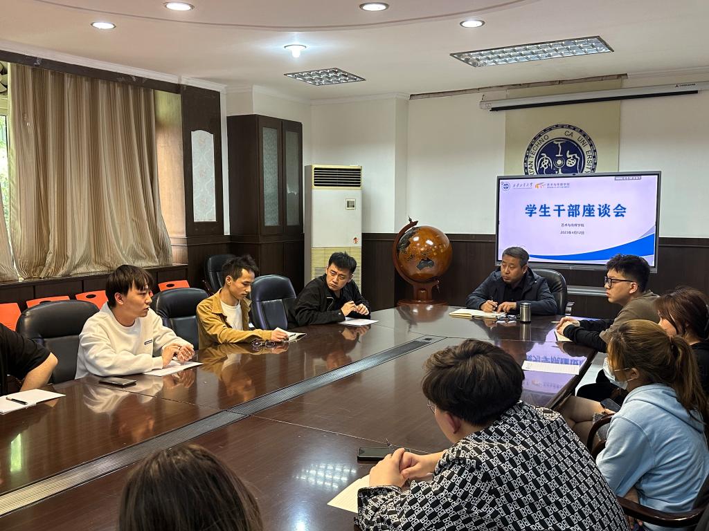 于2023年4月12日下午在金花校区接待室召开“倾听诉求,暖心交流”学生干部座谈会。会议由艺术与传媒黑料不打烊