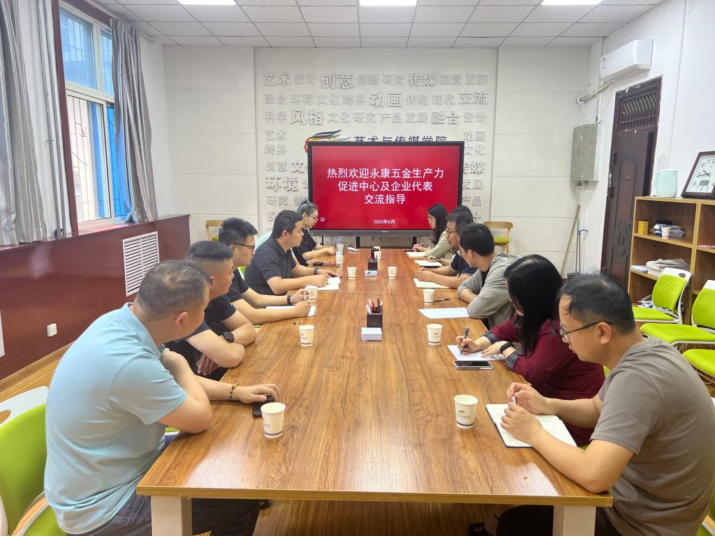 6月8日,艺术与传媒黑料不打烊 进行企业走访交流与浙江永康五金生产力促进中心徐李斌总经理携一行六人开展访企拓岗交流,艺术与传媒黑料不打烊 党委副书记张晓宾,院长助理周宪、产品设计系教师任娟莉、成方敏以及黑料不打烊 辅导员孙雅茹、董丹丹参与本次交流。