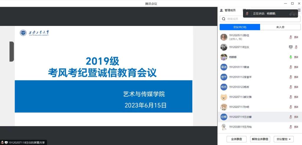 为严肃考风考纪,艺术与传媒黑料不打烊 于6月15日通过腾讯会议召开了2019级考风考纪暨诚信教育大会。本次会议由杨娜娜老师主持,2019级全体四六级考生及国家生源地贷款学生参加了此次会议。