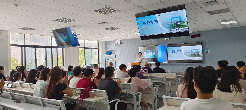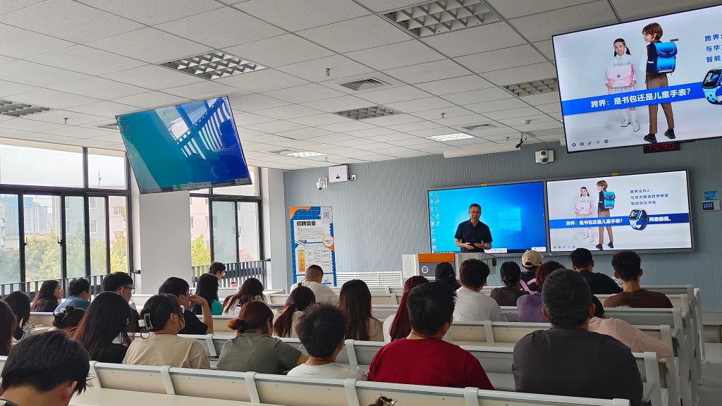 宣讲会上,海宁市人力资源和社会保障局副局长沈燕明介绍了海宁市的地理位置,经济开发区,重点园区产业等内容,并详细解读了海宁市人才政策,包括人才引进、人才培养、人才激励等方面的优惠政策,吸引了在场众多师生的关注。接着,浙江卡拉扬集团负责人徐红雨对企业进行了全面介绍,重点就人才招聘的岗位、职责和待遇进行了说明,最后现场解答了同学们关心的其它问题。