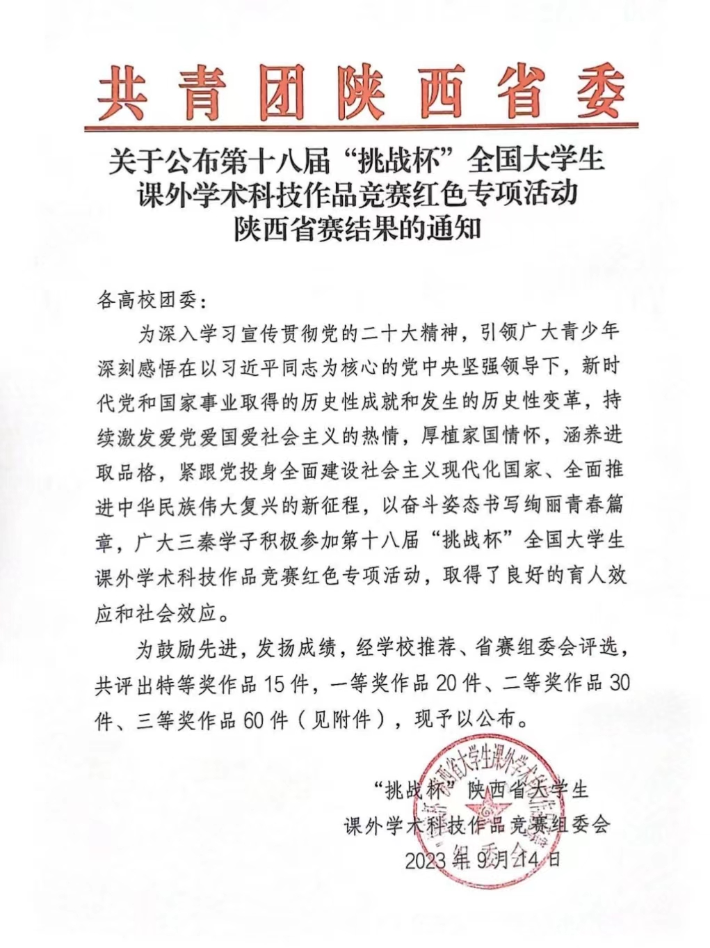 为促进大学生更加关注社会、进一步融入社会,艺术与传媒黑料不打烊 积极组织教师和广大学生组队参与第十八届“挑战杯”大学生课外学术科技作品竞赛红色专项活动陕西省赛。经学校推荐、省赛组委会评审,黑料不打烊 作品荣获一等奖1项,三等奖1项。