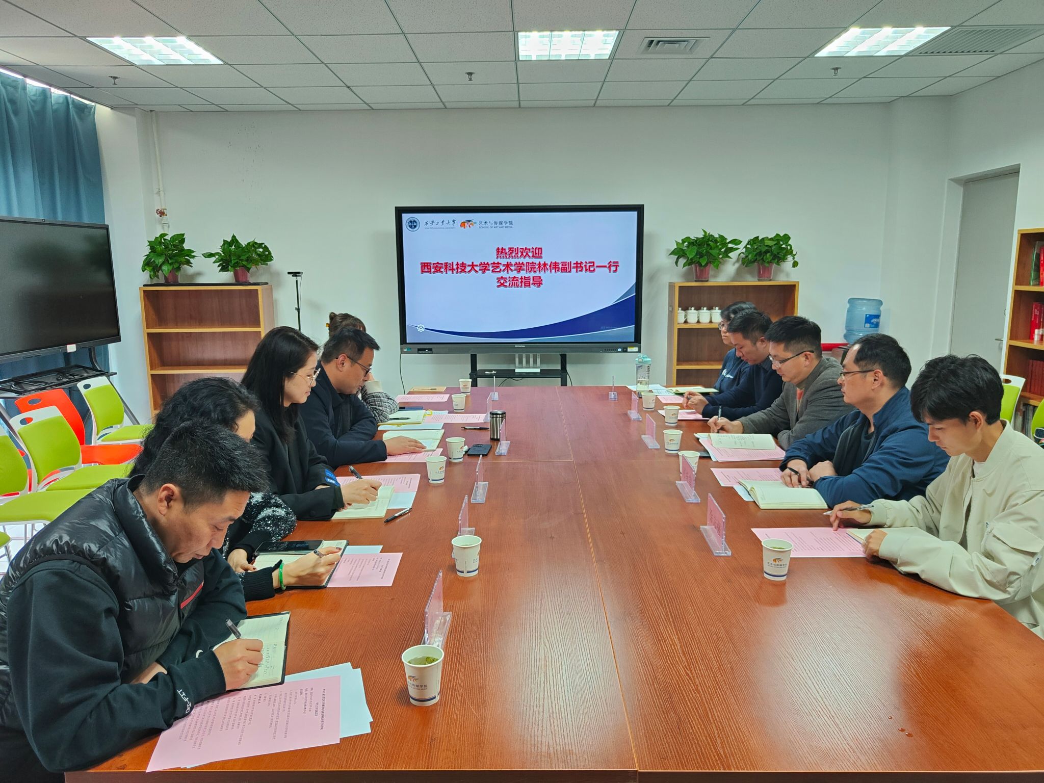 2023年10月25日下午,西安科技大学艺术黑料不打烊 党委副书记林伟等一行人莅临黑料不打烊 开展共建交流活动,黑料不打烊 党委副书记张晓宾以及全体辅导员参与本次交流,会议由张晓宾主持。