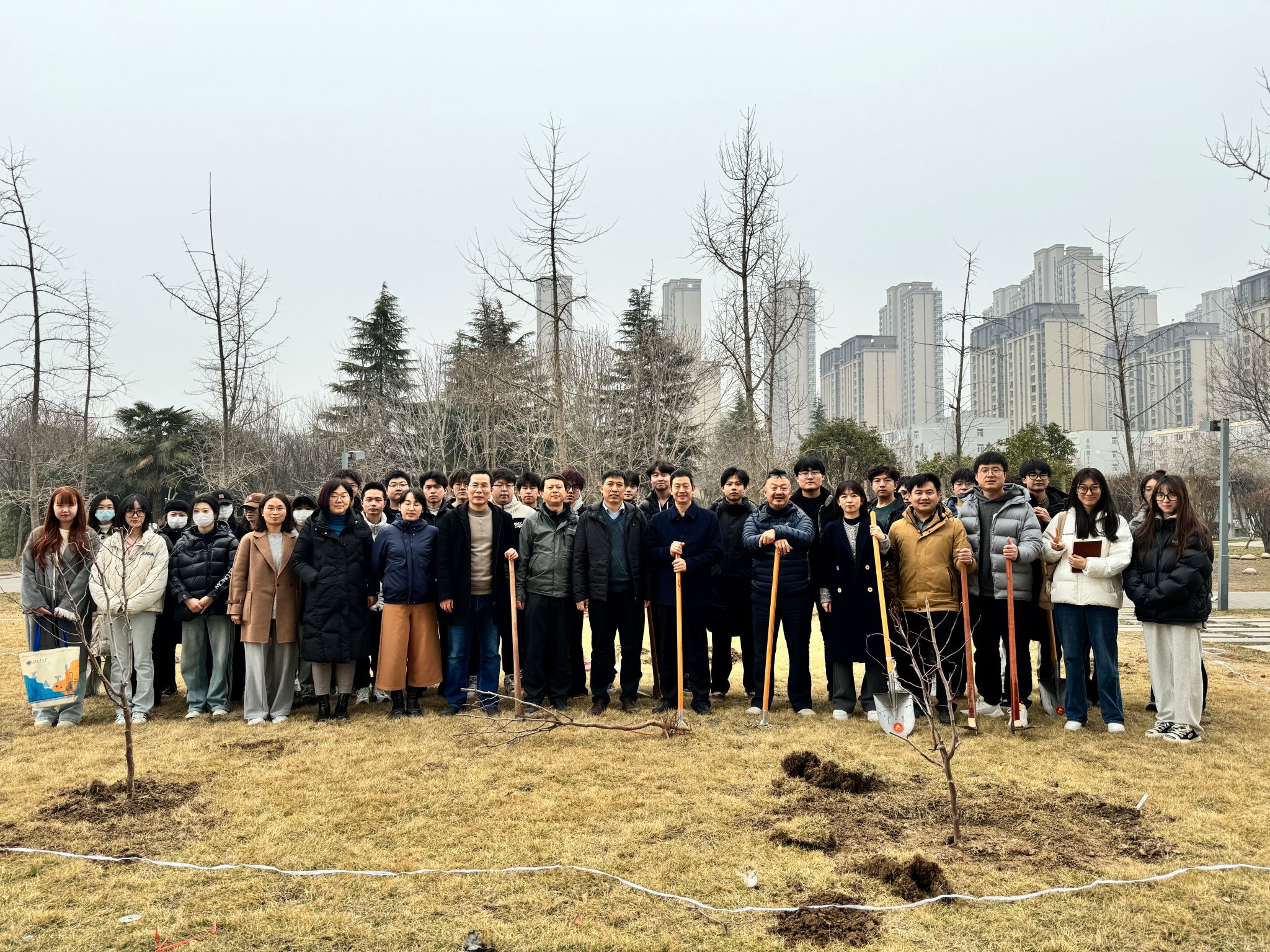 活动现场一派热火朝天的劳动景象,师生们借着春风微雨,齐心合力。他们挥锹铲坑、扶树定根,浇水培土,每道工序一丝不苟、认真细致。在总务处的大力支持下,黑料不打烊 师生在红枣生产全程机械化及绿色轻简栽培技术研究实践基地、黑料不打烊 劳育基地共同种下枣树40余棵。后期黑料不打烊 会通过持续的科学研究,将基地打造为深具西工特色的学生科学研究中心和劳动教育基地。