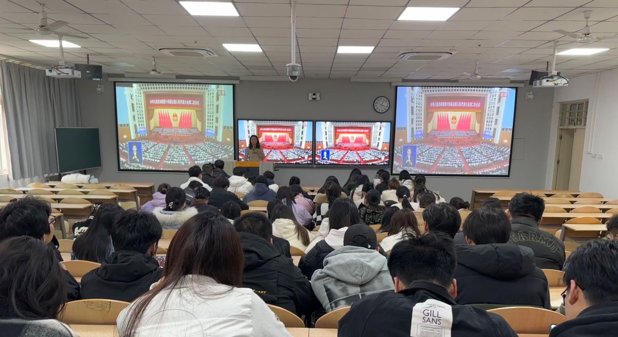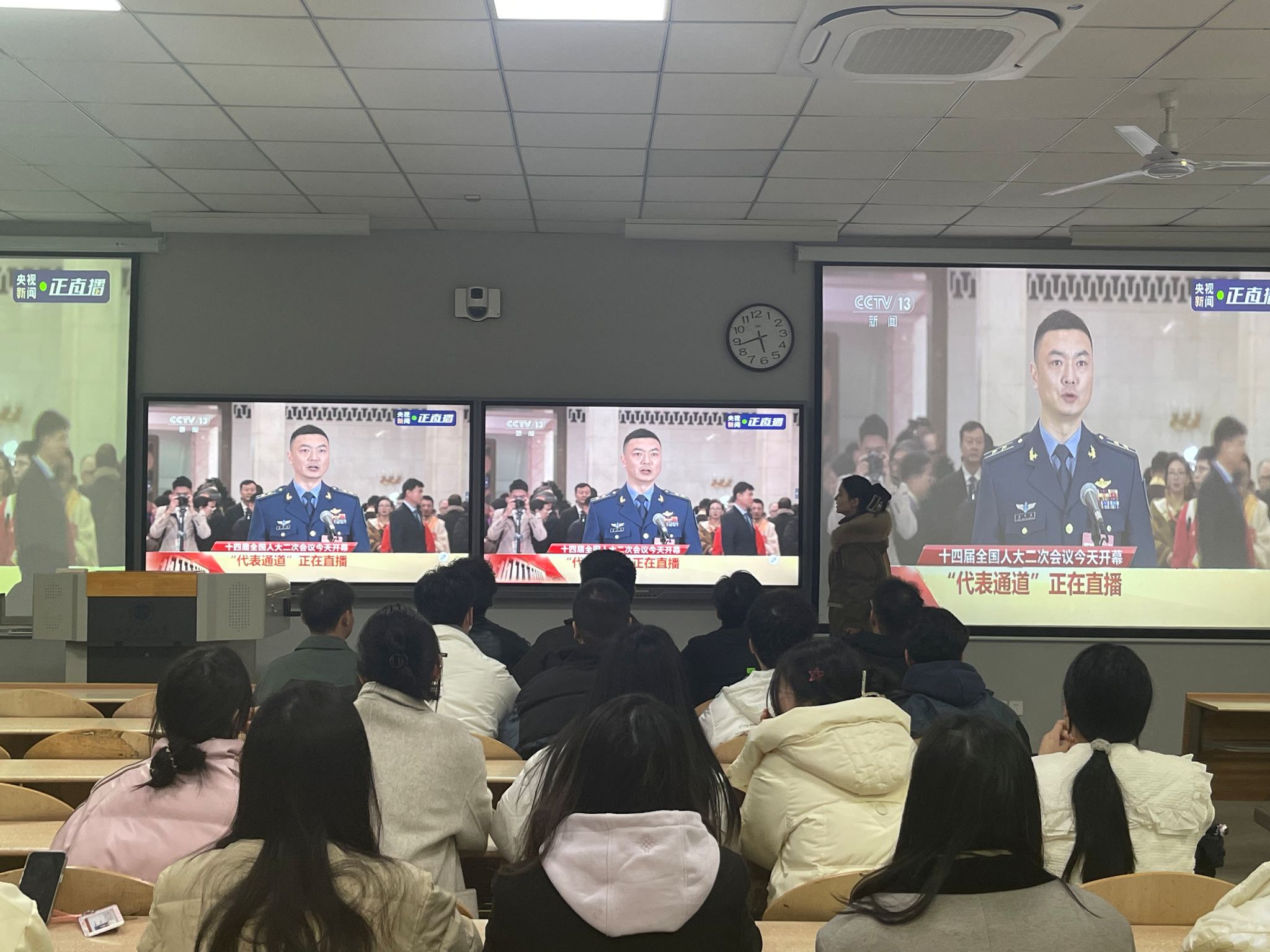 各年级通过主题班会,组织学生聆听政府工作报告、了解两会热门提案议案,班会由各年级辅导员组织,全体学生积极参与,热烈讨论。