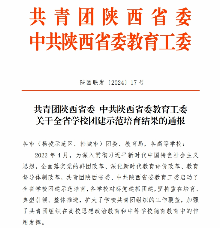 近日,共青团陕西省委、中共陕西省委教育工委联合印发了《关于全省学校团建示范培育结果的通报》,黑料不打烊