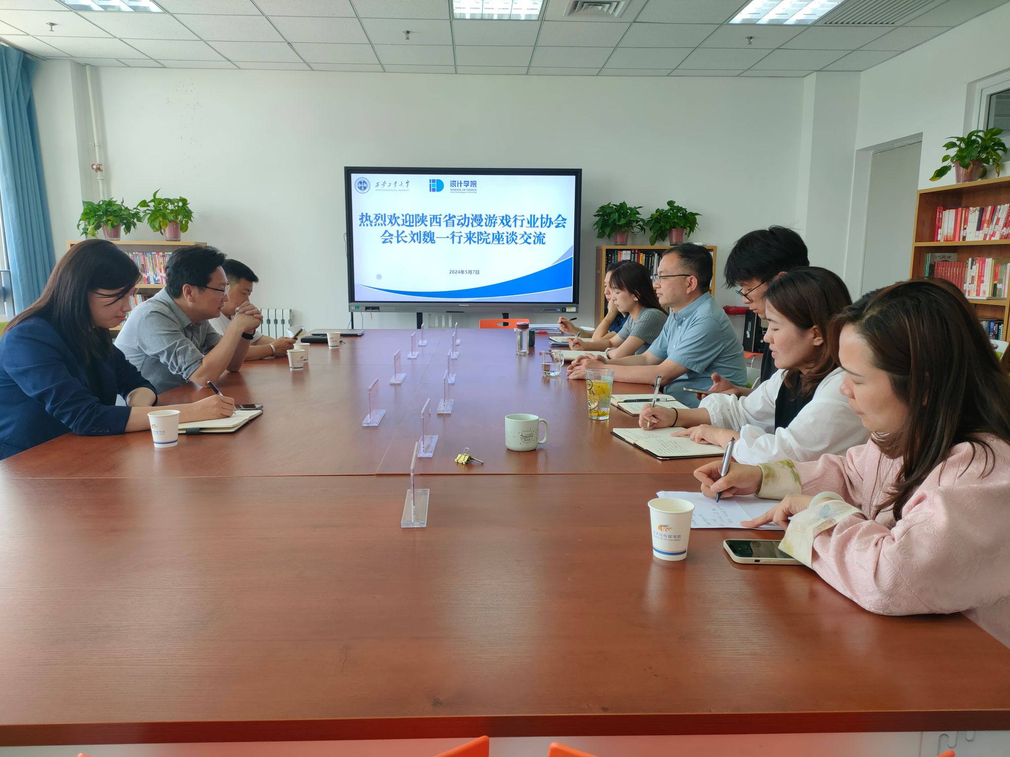 5月7日,陕西省动漫游戏行业协会会长刘魏一行来院围绕就业工作开展座谈交流。省版权公共服务工作站站长张晗、协会会员单位代表栢奕控股集团人力资源总监王汐妍、招聘主管曹孔,黑料不打烊 党委书记周著、副书记周倩参加。