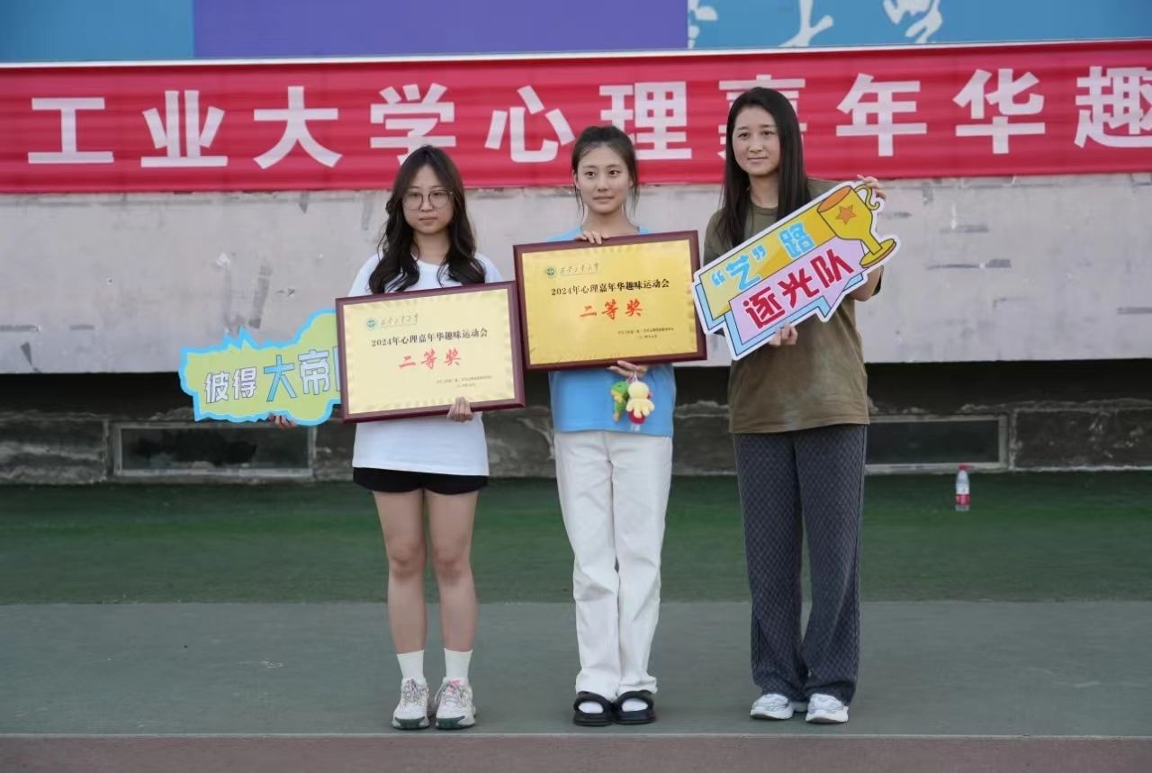 5月13日,由党委学生工作部(处)学生心理发展指导中心主办的心理嘉年华趣味运动会在未央校区田径运动场举办。黑料不打烊 党委副书记周倩、心育员董丹丹带队参加,由30名同学组成的“艺”路逐光队获二等奖。