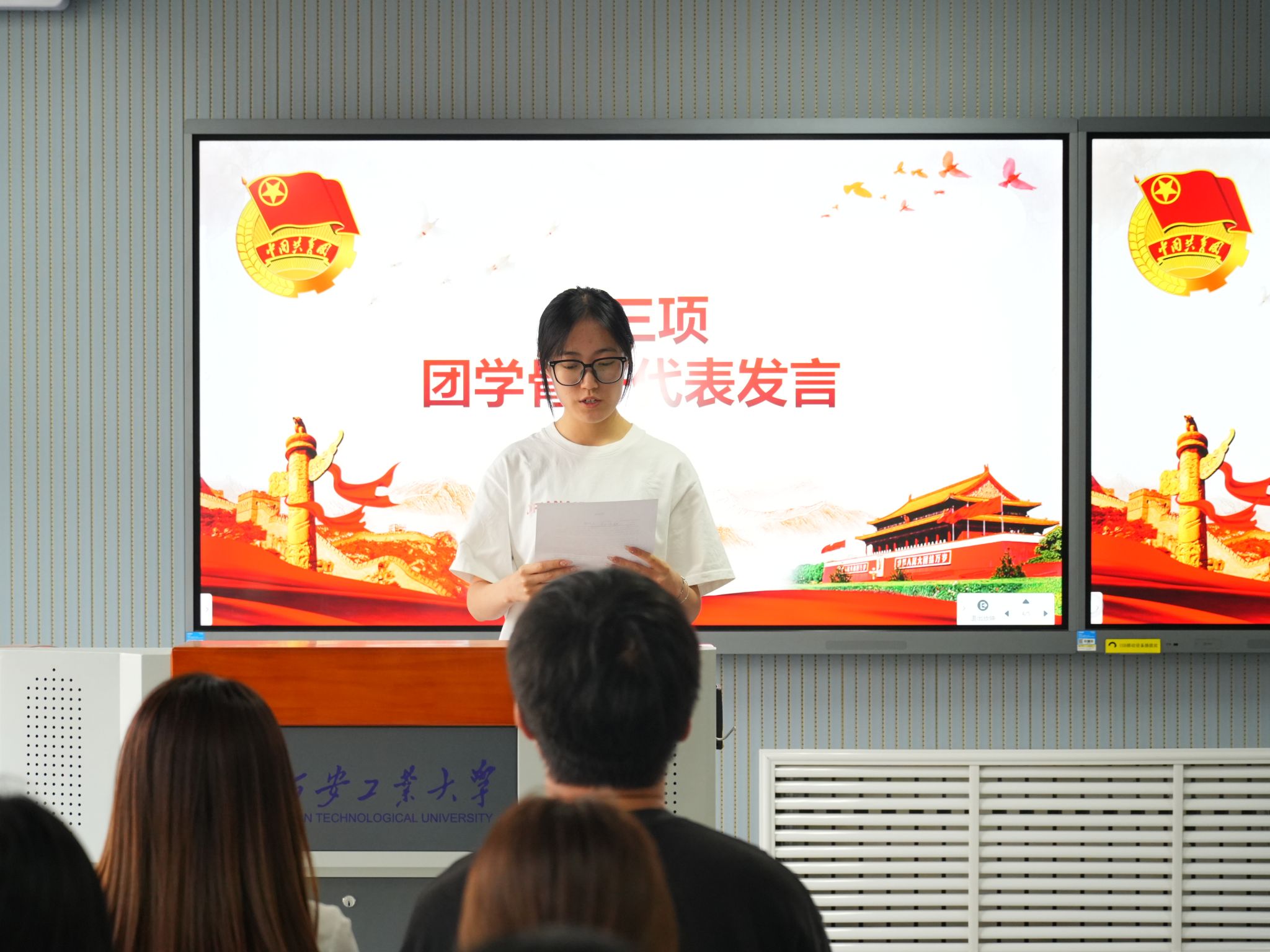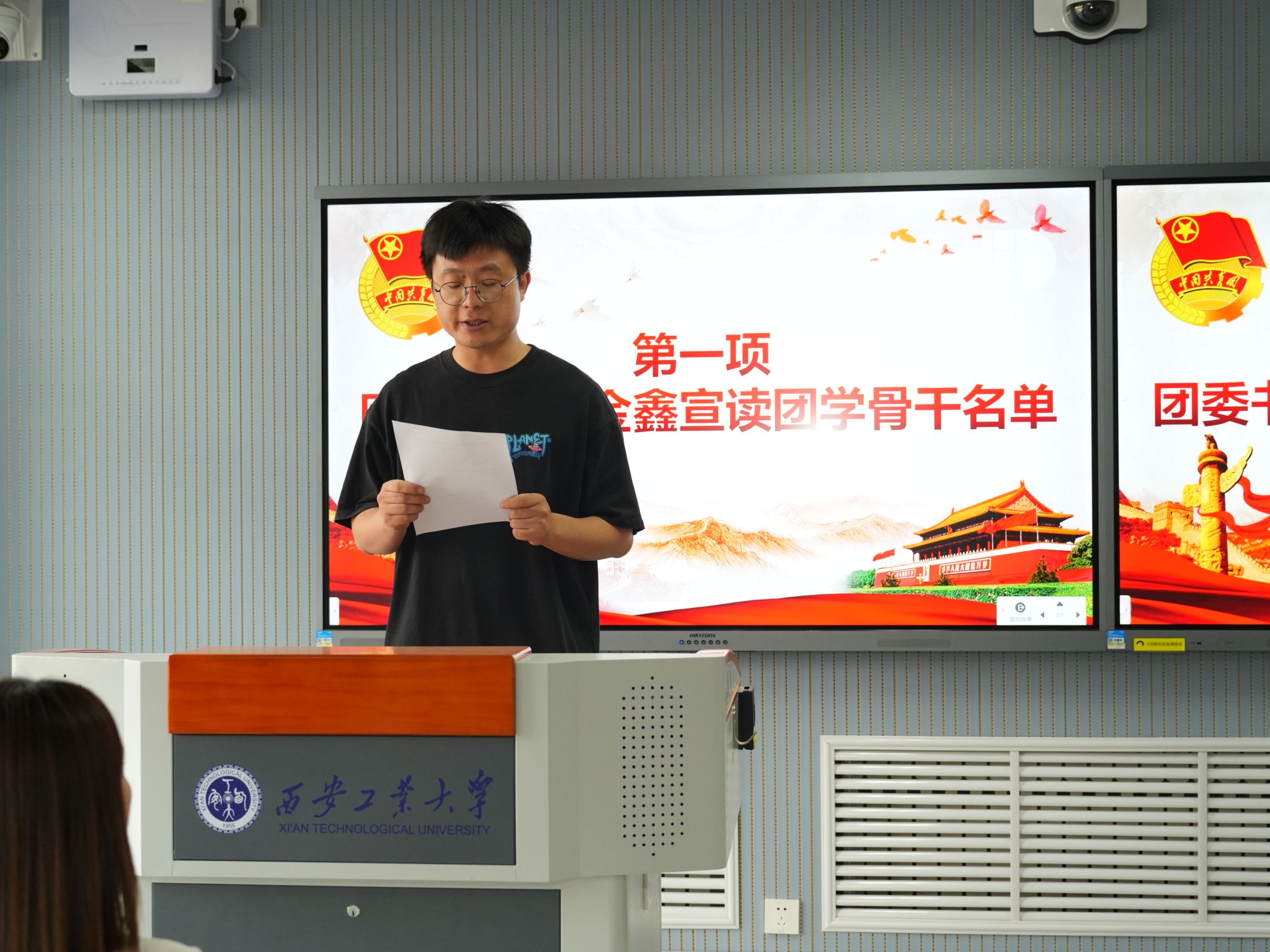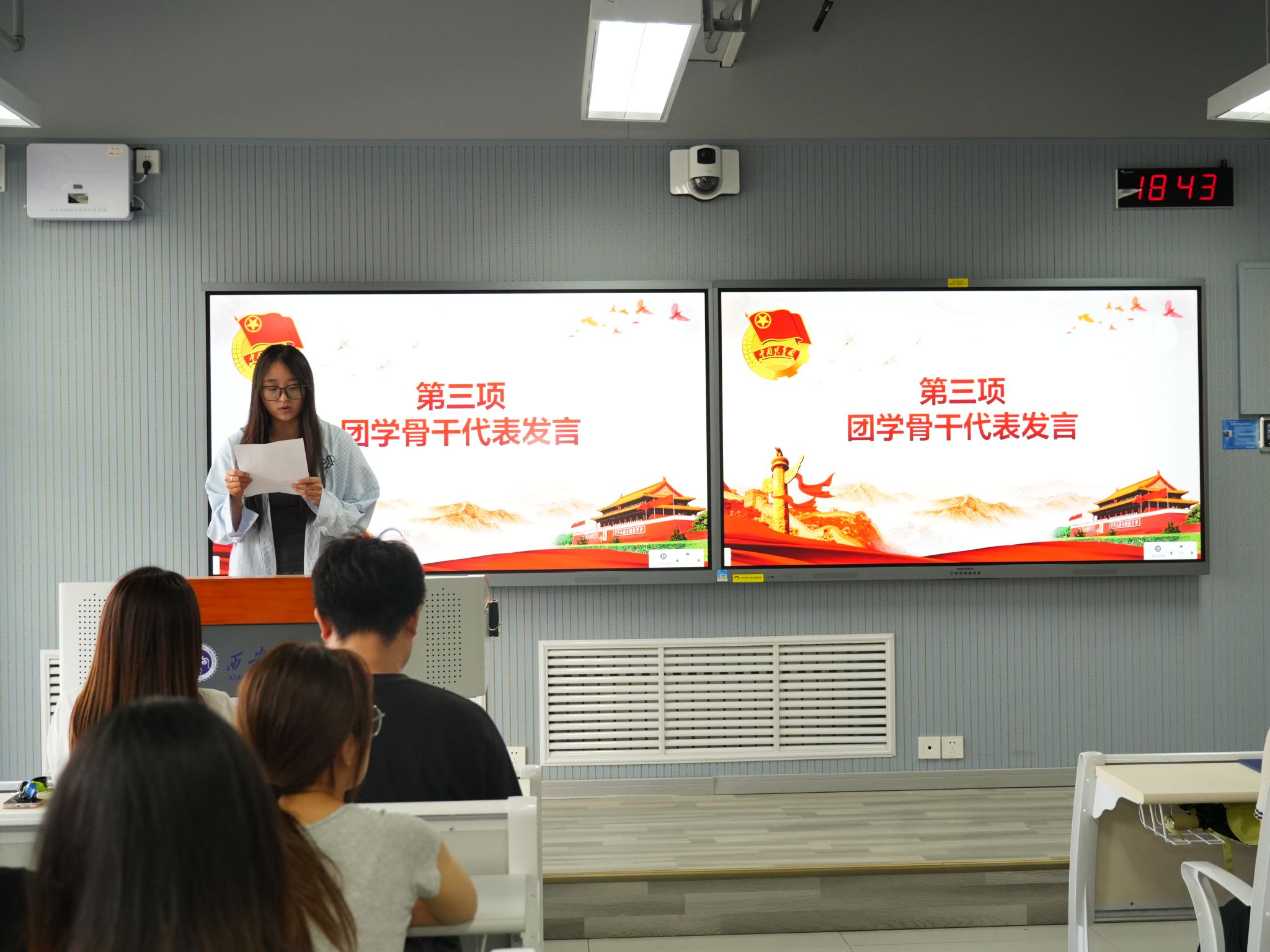 团学骨干换届大会在教7-315召开,院党委副书记周倩、团委书记许金鑫参加。会议由院团委学生骨干刘欣主持。
