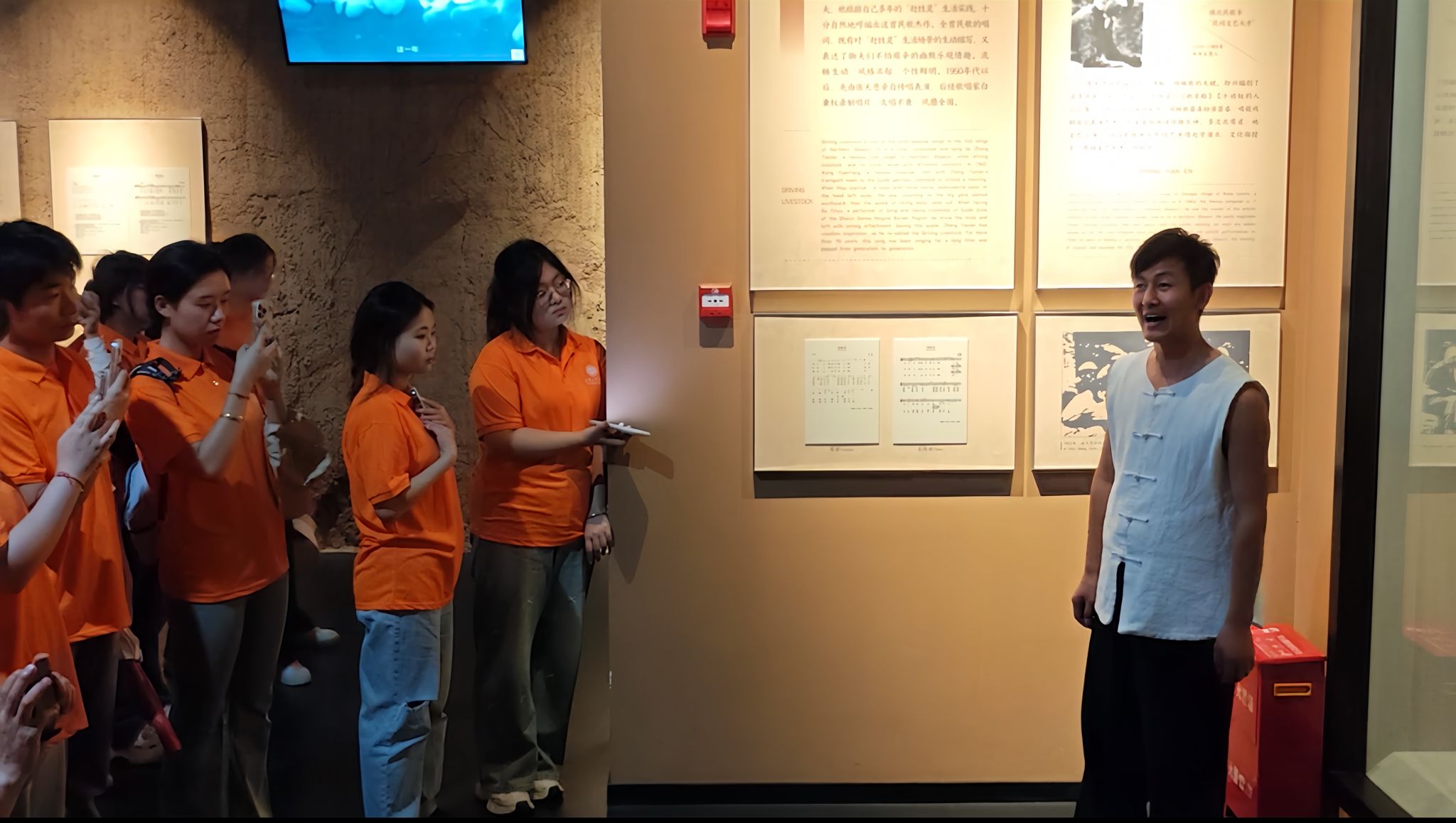 紧接着,呈现在队员们眼前的是由紫铜手工锻造成的鲁艺学员排练大合唱浮雕墙,栩栩如生且主题鲜明。上世纪二三十年代陕北区域率先摆脱封建统治,引发红色革命,为当地民歌注入新活力,带来了丰厚的歌唱素材。陕北民歌与革命征程息息相关,赋予歌曲独特的激昂之气,如嘹亮号角,奏响陕北土地,激发起众人勇敢前行,积极参与解放斗争。通过这些红色民歌的传唱,队员们更好地认识到曾经的艰辛和现在的幸福来之不易,更坚定了今后在党的领导下建设新时代的决心和气概。