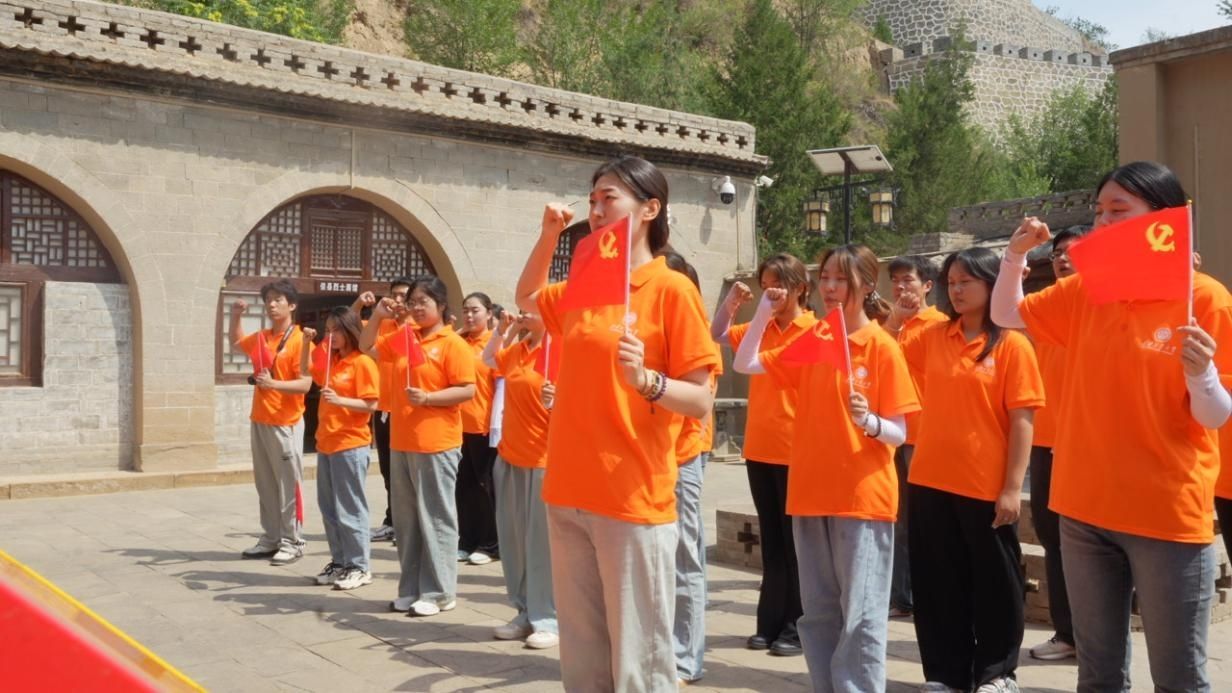 次日,实践队转战杨家沟革命纪念馆。这里不仅是中共中央转战陕北的重要站点,更是中国革命史上的一个重要转折点。队员们沿着蜿蜒的山路前行,仿佛重走当年革命先辈们的道路,每一步都充满了对历史的敬畏。在防空洞内,他们感受到了革命先辈在艰苦环境中坚持斗争的不易;在纪念馆中,一件件珍贵文物让他们更加深入地了解了那段波澜壮阔的历史。特别是十二月会议旧址的参观,让队员们仿佛看到了毛泽东、周恩来等领导人在此运筹帷幄、决胜千里的场景。在庄重的入党宣誓仪式上,队员们再次面向党旗,许下了对党和人民的庄严承诺。此次杨家沟之行,不仅让队员们领略了陕北独特的风土人情,更让他们深刻认识到中国革命胜利的来之不易,进一步激发了他们为实现中国式现代化贡献力量的使命感。
