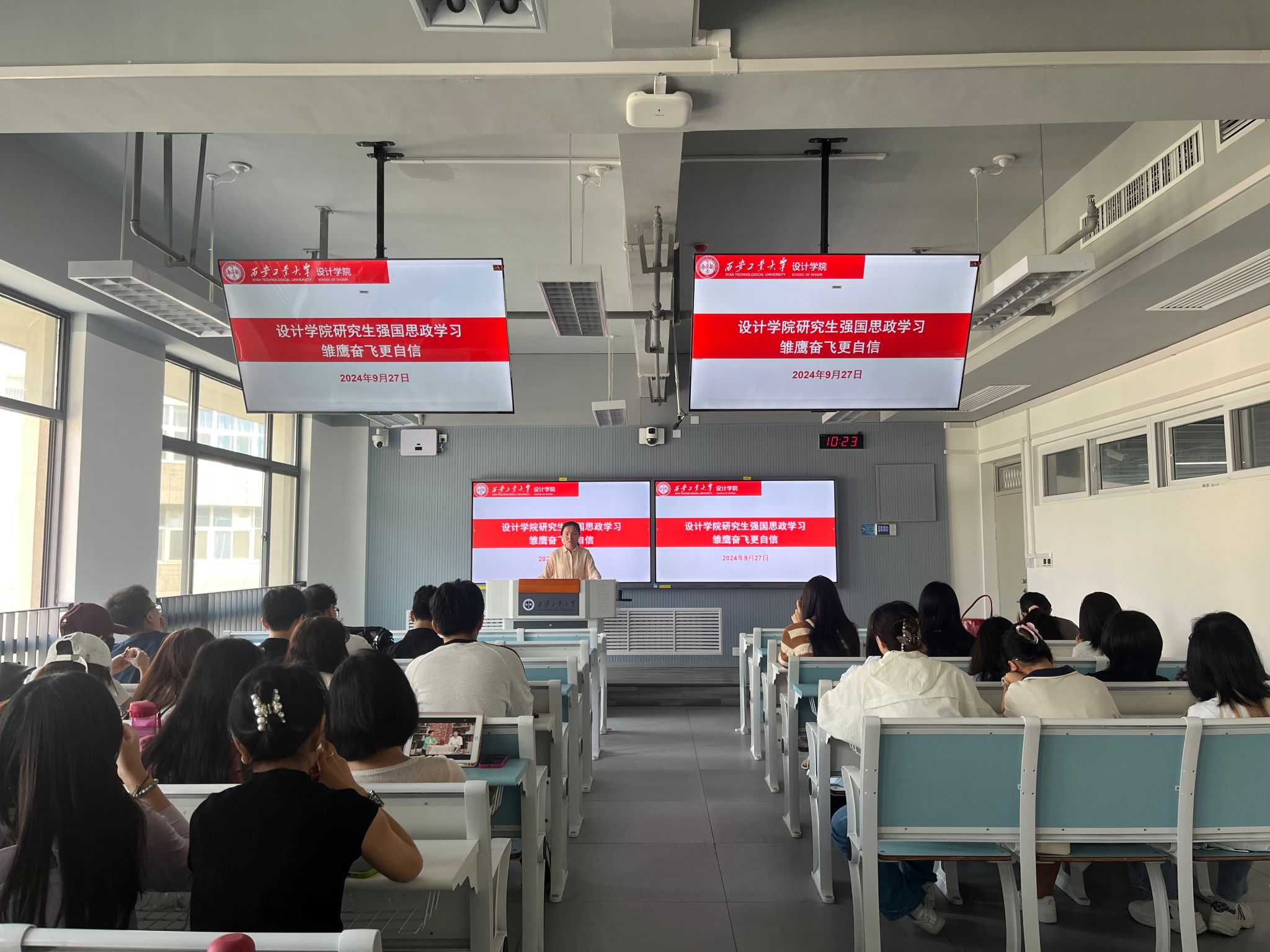 会上,贾宇星向研究生强调了思政教育的重要性及其对个人成长与国家发展的深远影响。随后,全体研究生集体观看了“强国思政课——雏鹰奋飞更自信”专题视频。该片以生动的案例和感人的故事,展现了当代青年在党和国家的关怀下茁壮成长、自信前行的风采,激发了研究生们强烈的共鸣和深刻的思考。观影结束后,研究生们拿起便利贴,认真记录下自己在学习过程中的所思所感。