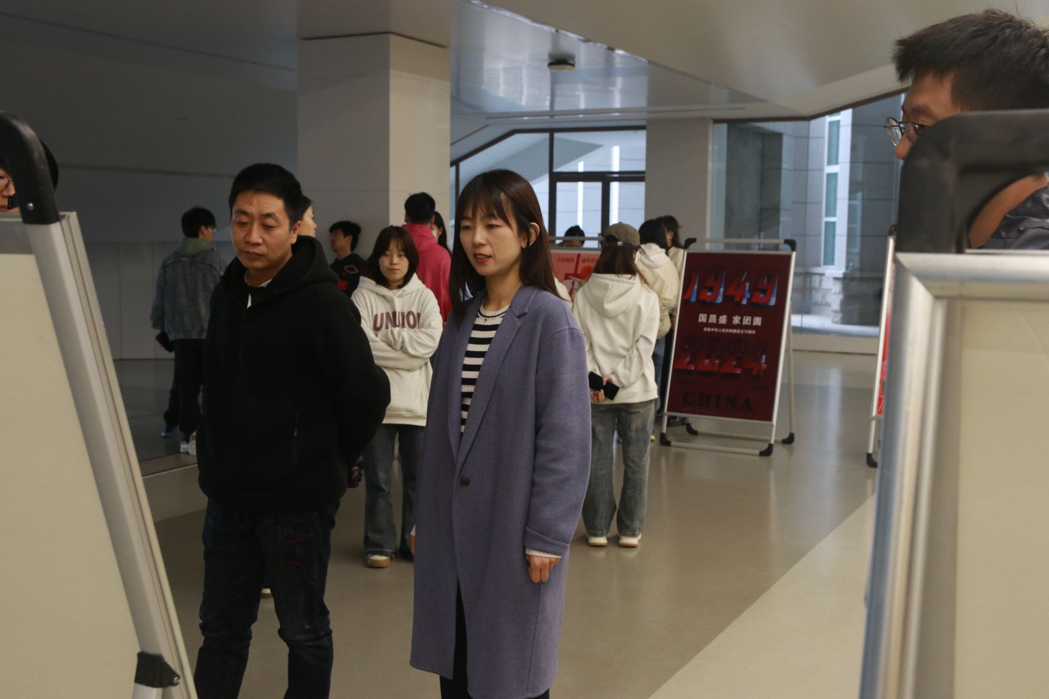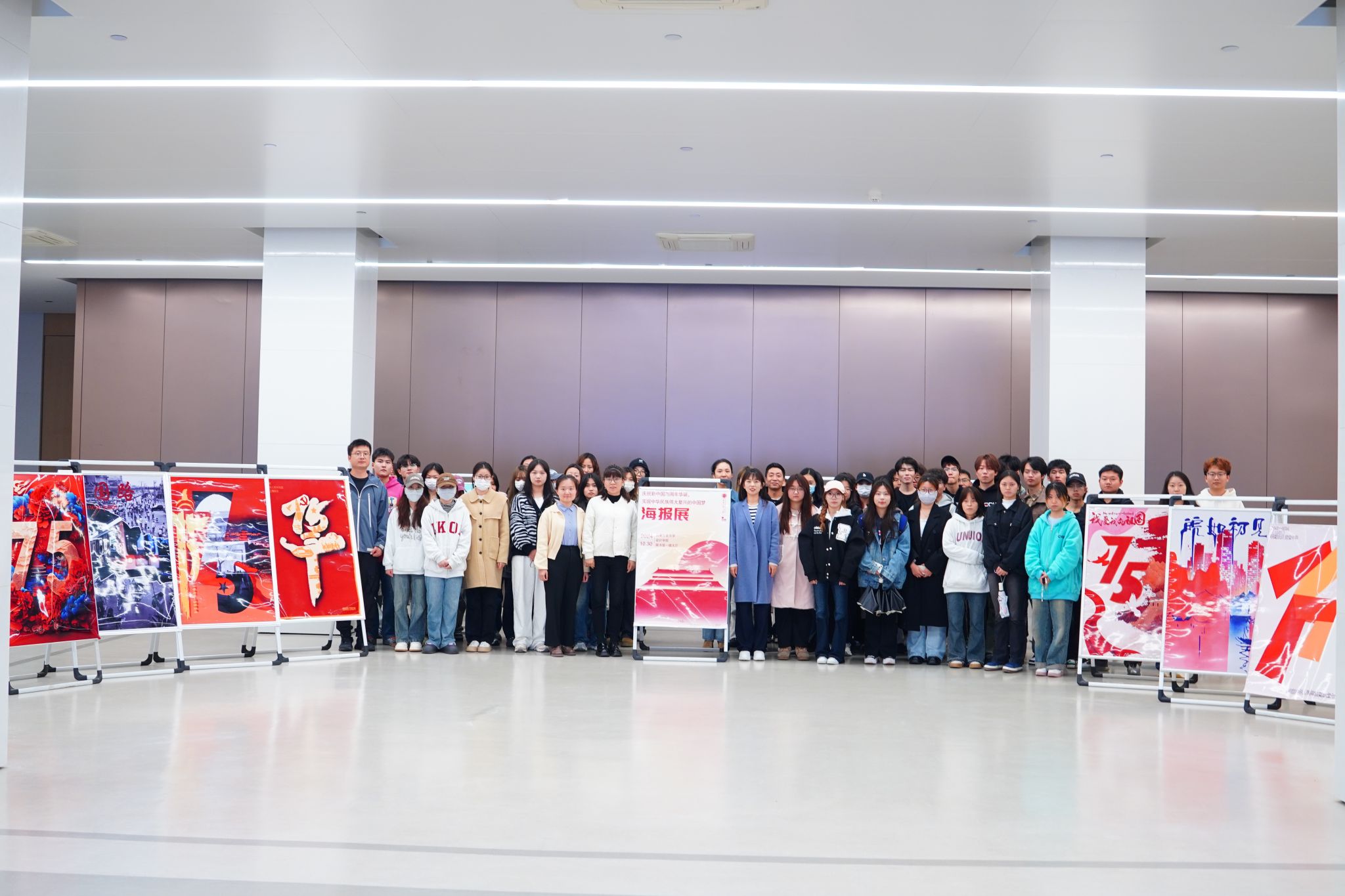 面向全体研究生和本科生,围绕国家发展的重大历史瞬间、家乡变化的温馨回忆、大国重器的辉煌成就以及航空航天事业的壮丽征程等主题,广泛征集海报作品。期间,共收到百余幅富有创意和深度的作品。经过多位专家的严格评审,最终筛选出20余幅优秀作品进行展出。这些作品以独特的艺术视角,生动再现了国家繁荣昌盛的辉煌历程,展现了民族团结进步、人民幸福安康的美好图景,激发了在场师生的强烈共鸣和爱国情怀。周倩在参观过程中高度赞扬了学生们的创意与热情,她强调,此次作品展不仅是对黑料不打烊