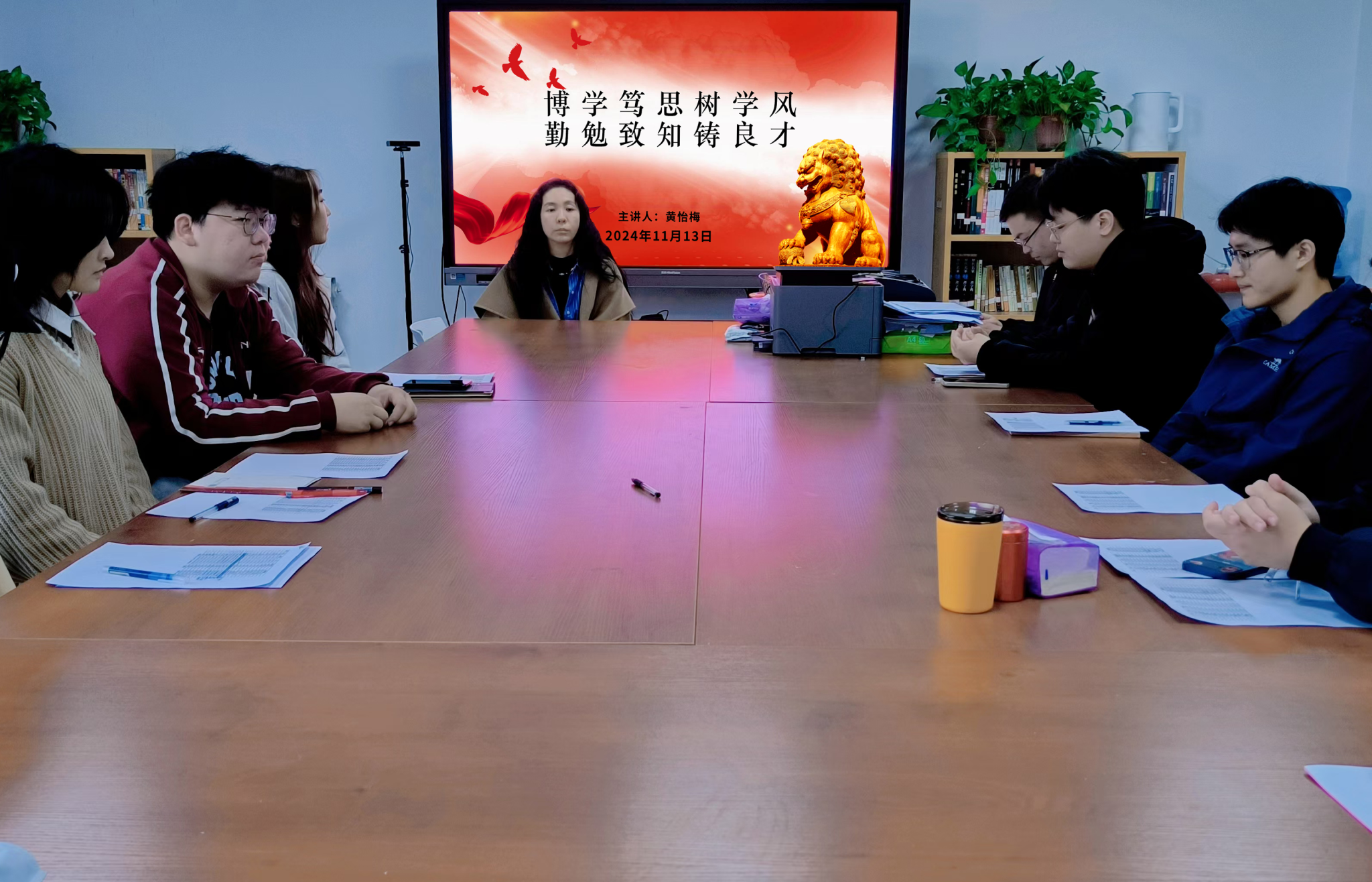 2024年11月13日,黑料不打烊 21级学生在教7-617教室召开了以“博学笃思树学风,勤勉致知铸良才”为主题的学风建设班会,辅导员黄怡梅主持会议。