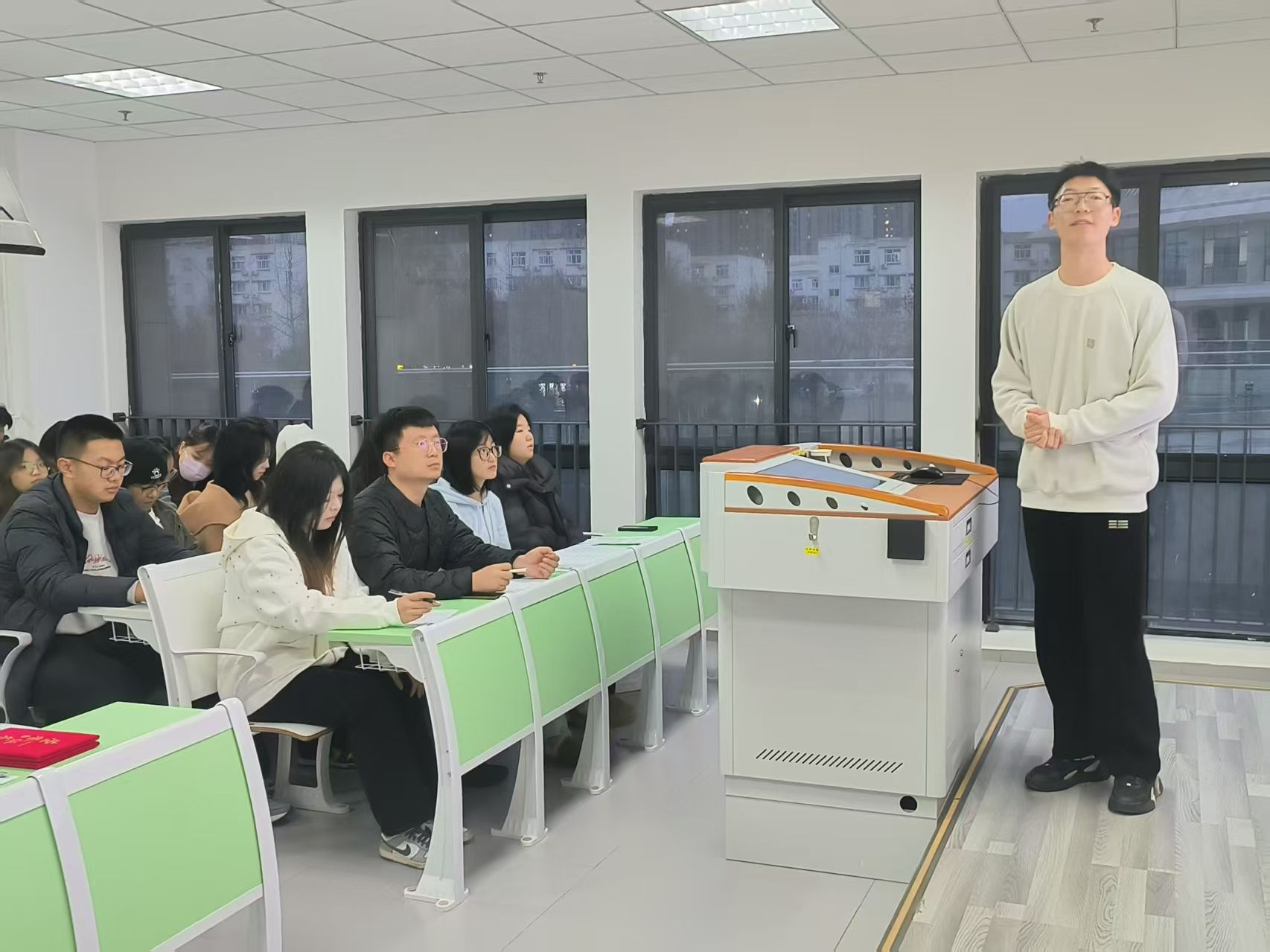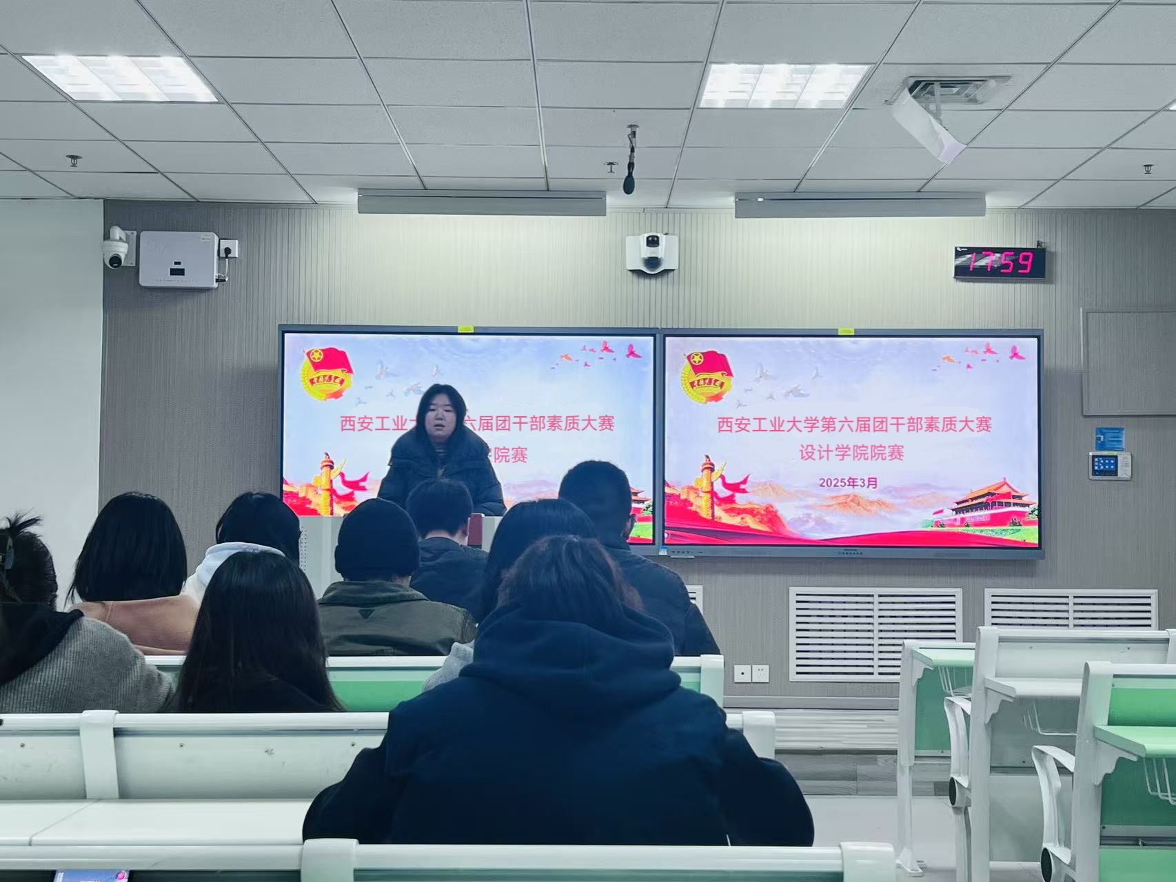 第六届团干部素质能力大赛院赛。院团委书记许金鑫、副书记白雪,学生会轮值主席谭晓润担任评委。