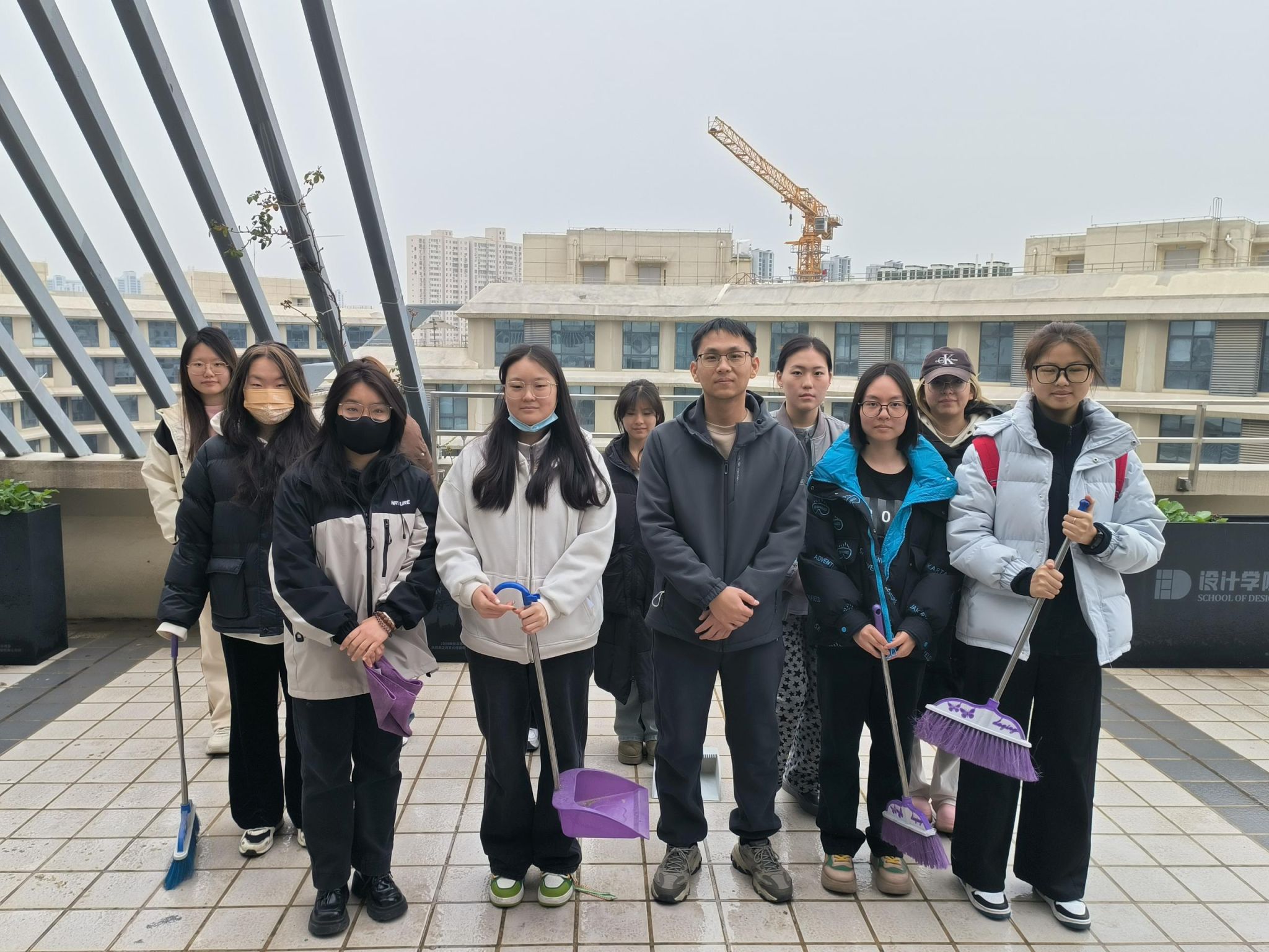 活动现场,志愿者分别对楼道、天台及楼梯间区域进行打扫。经过2小时作业,完成对公共桌椅的清理、天台绿植的修整和展示标牌的擦拭。志愿者们将雷锋精神的时代内涵转化为具象化行动,既维护了教学区域的环境整洁,也在协作中强化了校园主人翁意识。