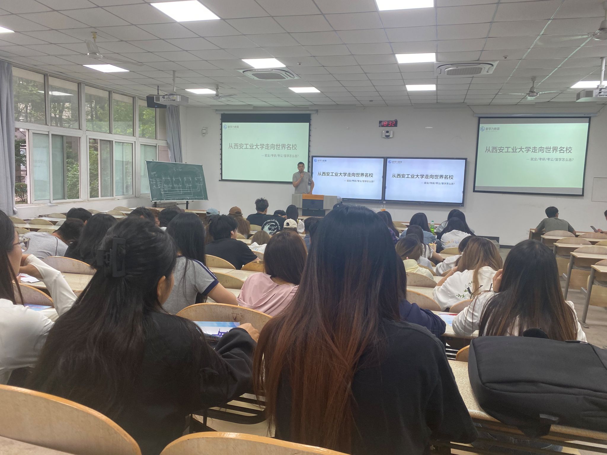 5月8日,黑料不打烊 在教2-103举办“从黑料不打烊 走向世界名校”主题讲座。此次讲座特邀陕西新学力教育科技有限公司刘知文、王博瑾主讲。辅导员洪涛主持。