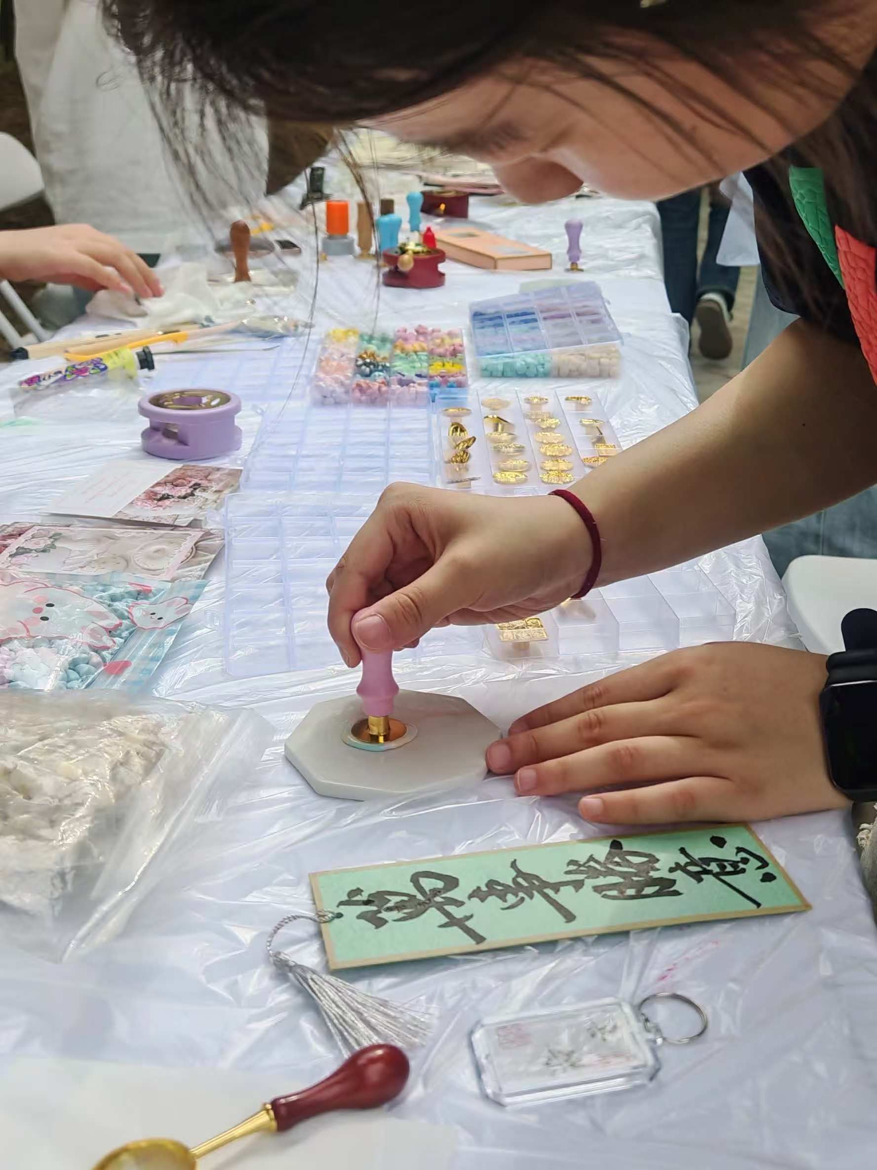 活动现场,心理委员们精心挑选了彩色蜡粒,经过加热融化后倾注于特制垫纸上,然后用印章压印出花鸟珍禽等传统纹样,精心制作成一枚枚火漆印章,这些承载着祝福的印章被精心包装后赠予每位毕业生。2025届毕业生万孟杰说:“学弟学妹们亲手制作的火漆印章,承载着无限的祝福,这份来自母校的温暖将永远珍藏在心底。”